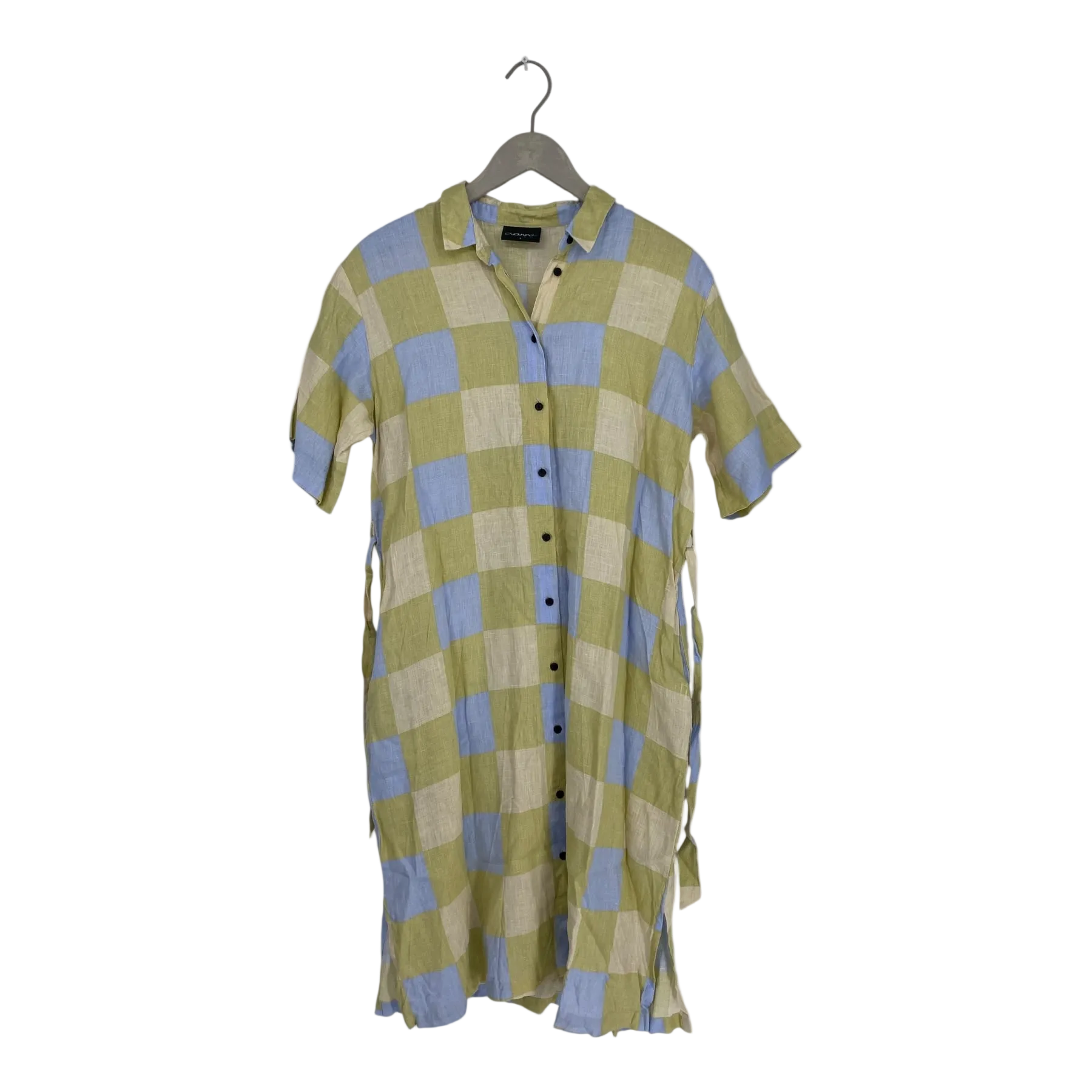 Aarre women's linen dress with buttons in the front, short sleeves, a detachable belt and pockets on the sides.