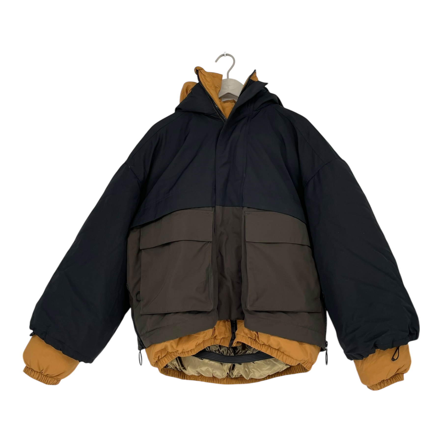 The Oslo Utility Jacket by Embassy Of Bricks And Logs Merritt utility jacket features multiple pockets and is suitable for skiing or other snowy activities with its inner snow lock. The jacket features a double hood with drawstrings. This item is a sample.