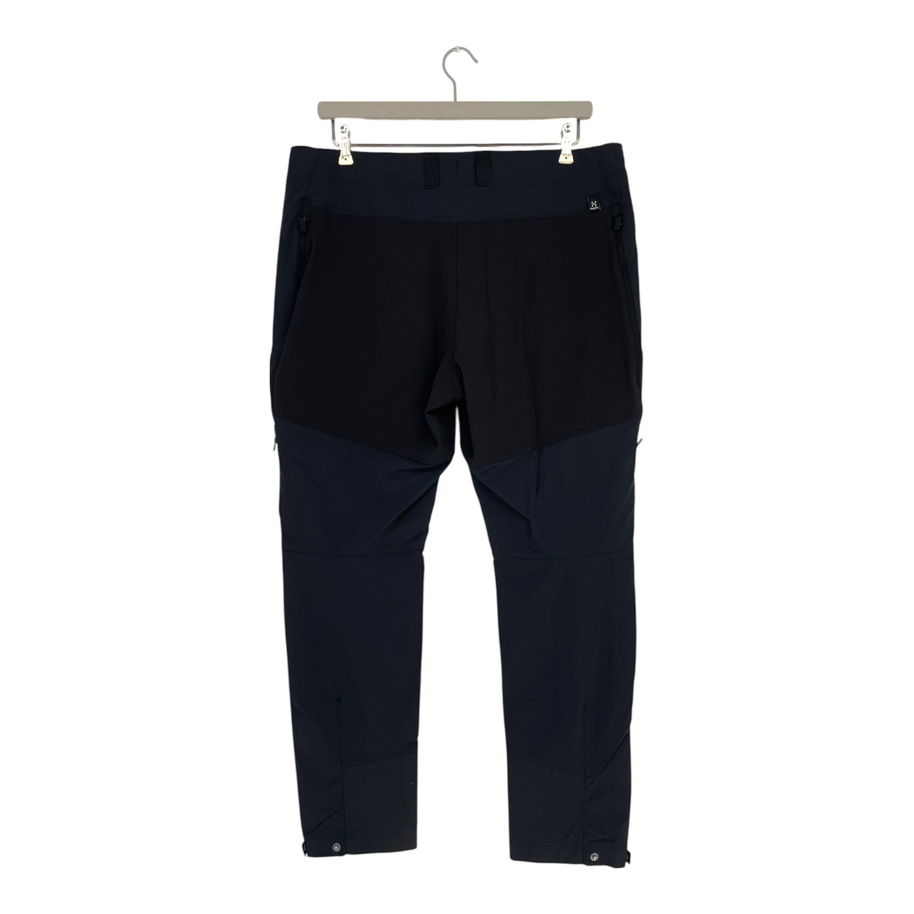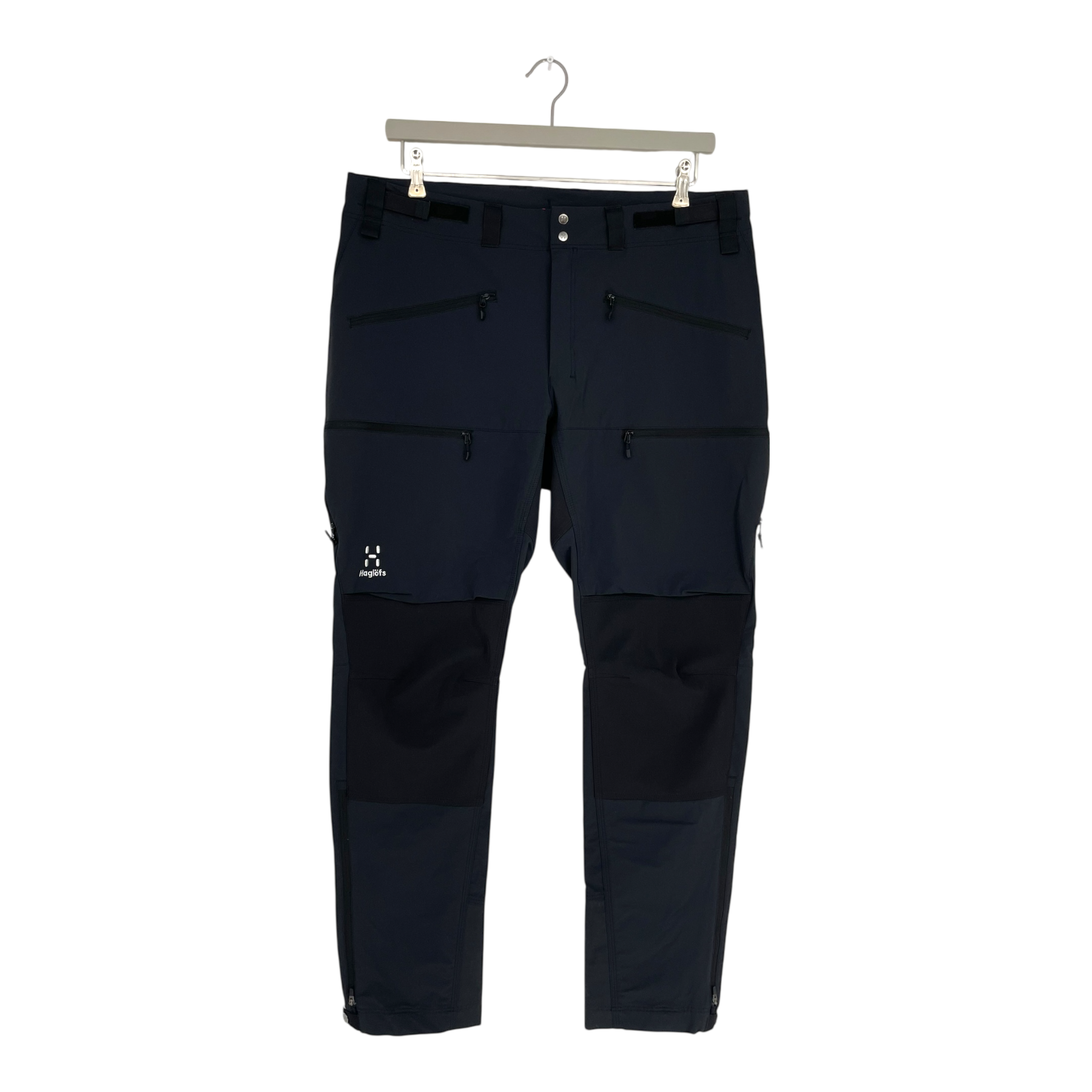 Haglöfs Rugged shell pants are durable, protect against changing weather conditions, and are flexible where needed. The fit is a good combination of slim and relaxed. The pants follow the contours of the body without being too tight. They have a high waist and tapered legs.