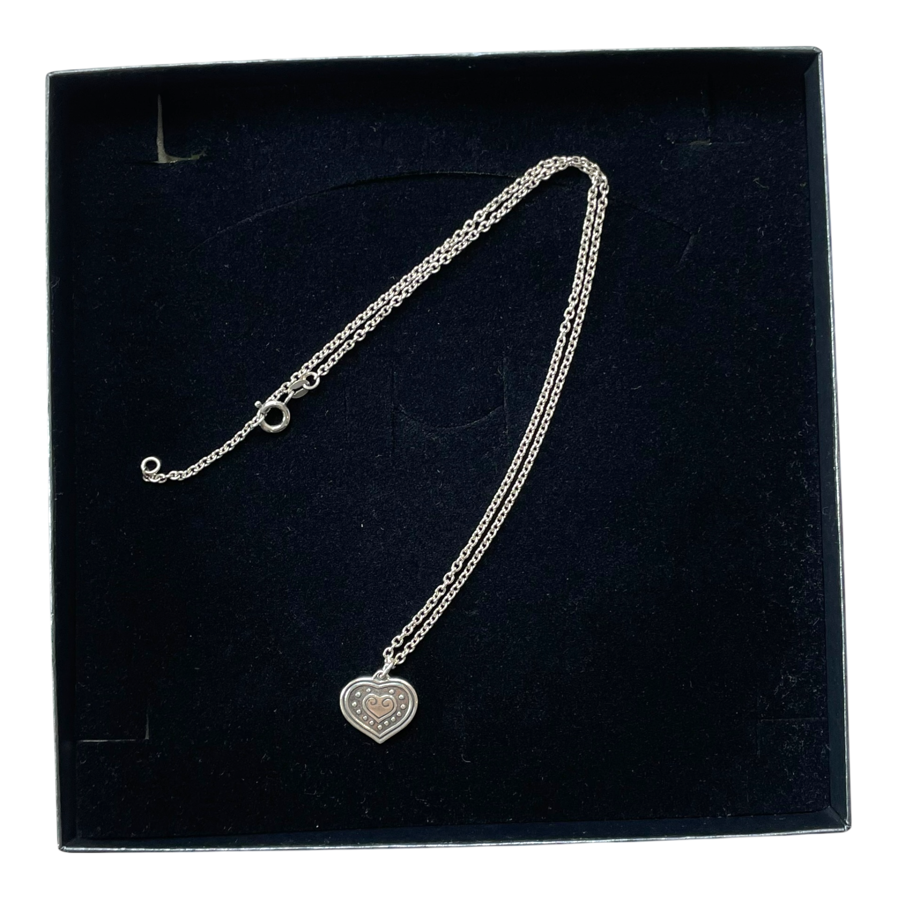 Kalevala Koru Euran sydän necklace. The message of a heart is eternal and universally understood. The Viking Era prototype of this heart was found in Eura. A delicate heart pendant for girls and women of all ages. The plain backside can be engraved. Anchor chain, adjustable length 45/42 cm. Spring ring clasp.
