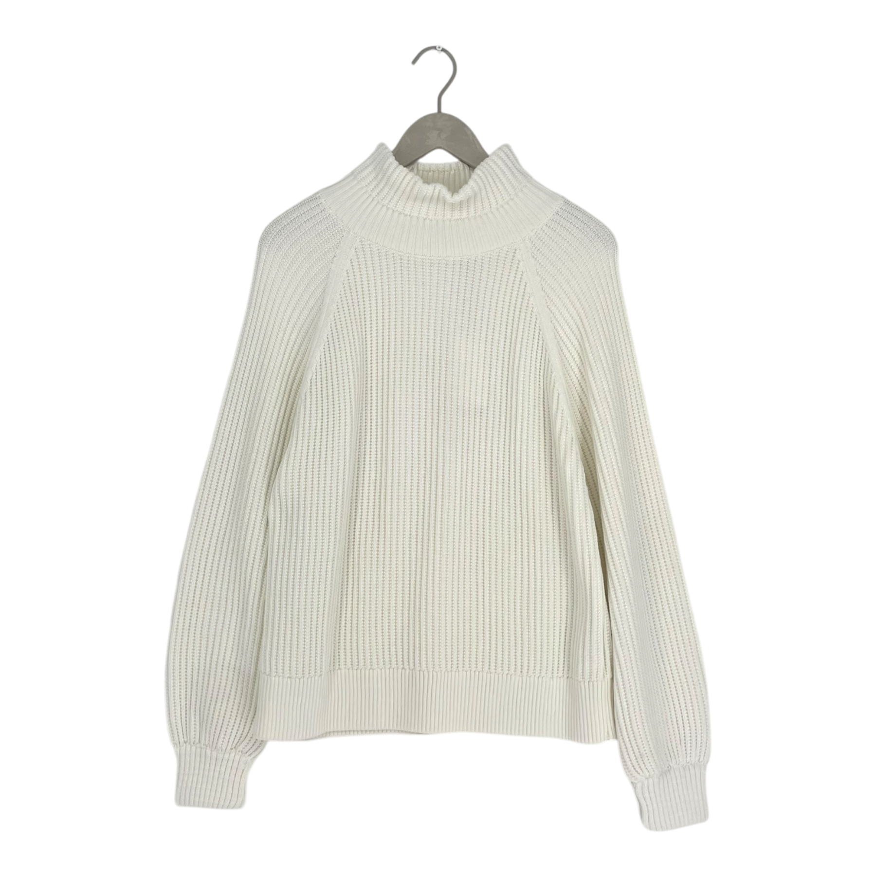 Lanius chunky knit sweater featuring a high neck design with ribbed collar, cuffs and hem. The sweater has a relaxed fit with raglan sleeves and textured knit construction. GOTS certified organic cotton ensures sustainable and ethical production.