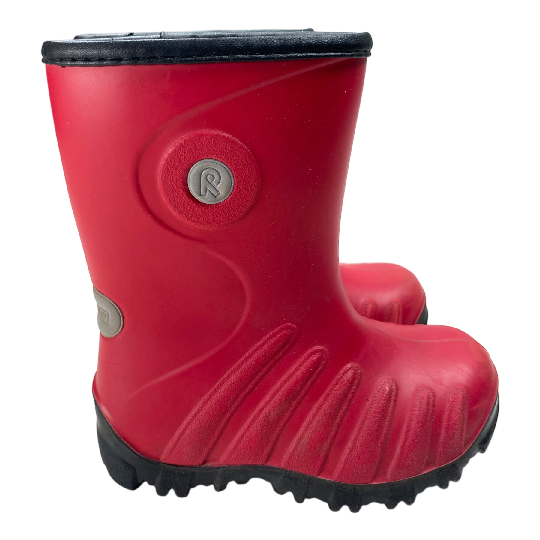 Reima winter rain boots are waterproof with extra warm fleece lining. They are super easy to pull on and keeps your feet warm and dry. The item has some tiny signs of use as seen in the pictures.