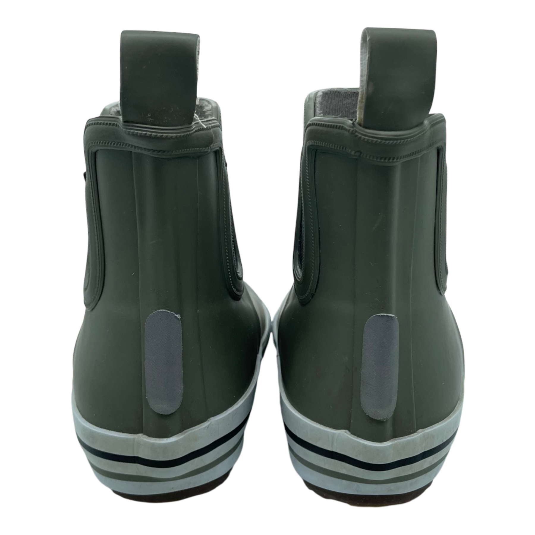Reima Ankles rain boots in chelsea boot style. Elastics on side to make dressing easier. The shoes have some scuff marks and light discoloration as shown in the pictures.