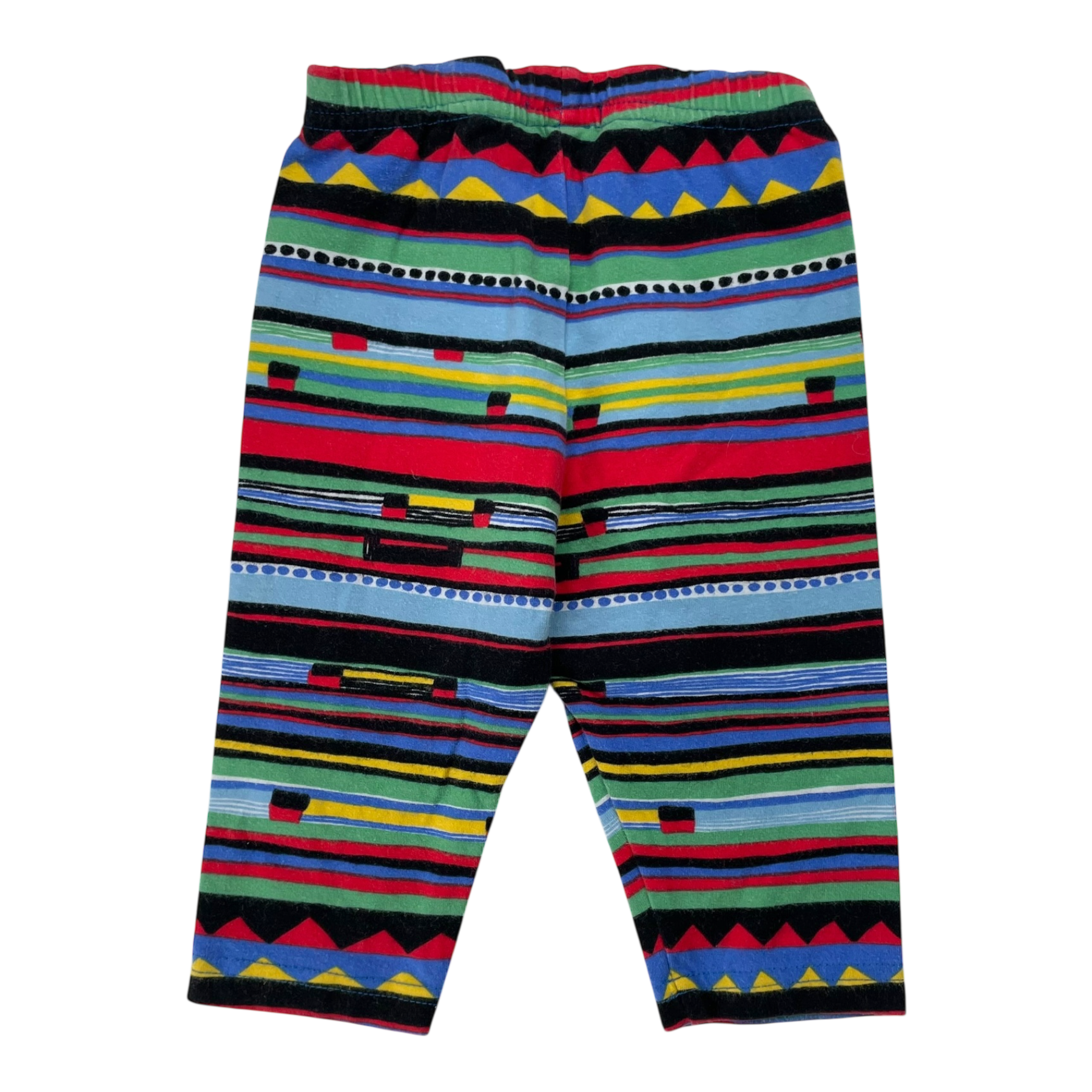 Marimekko leggings in multicolor print. There is some white fluff on the fabric.