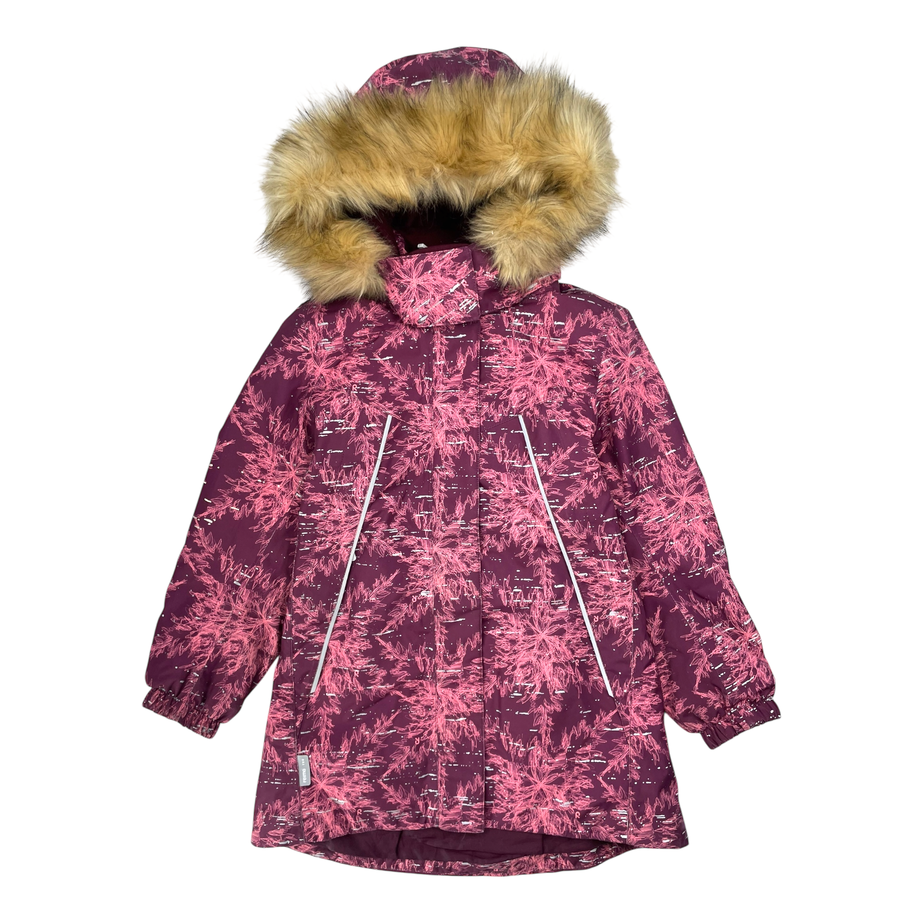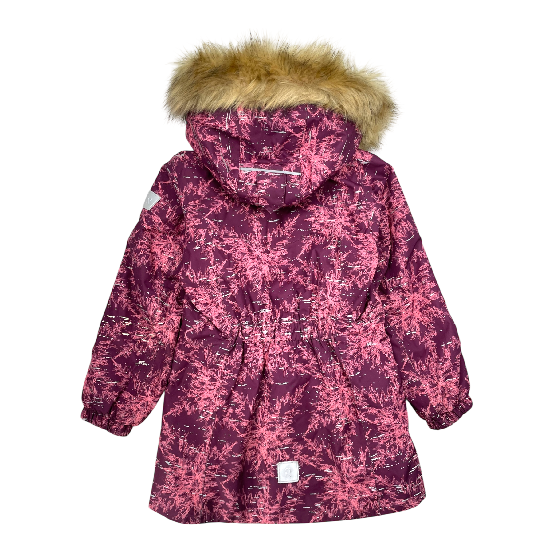 Reima Silda padded winter jacket with a detachable faux fur hood, elastic on the hem, and zip pockets. The material is originally wind- and waterproof.