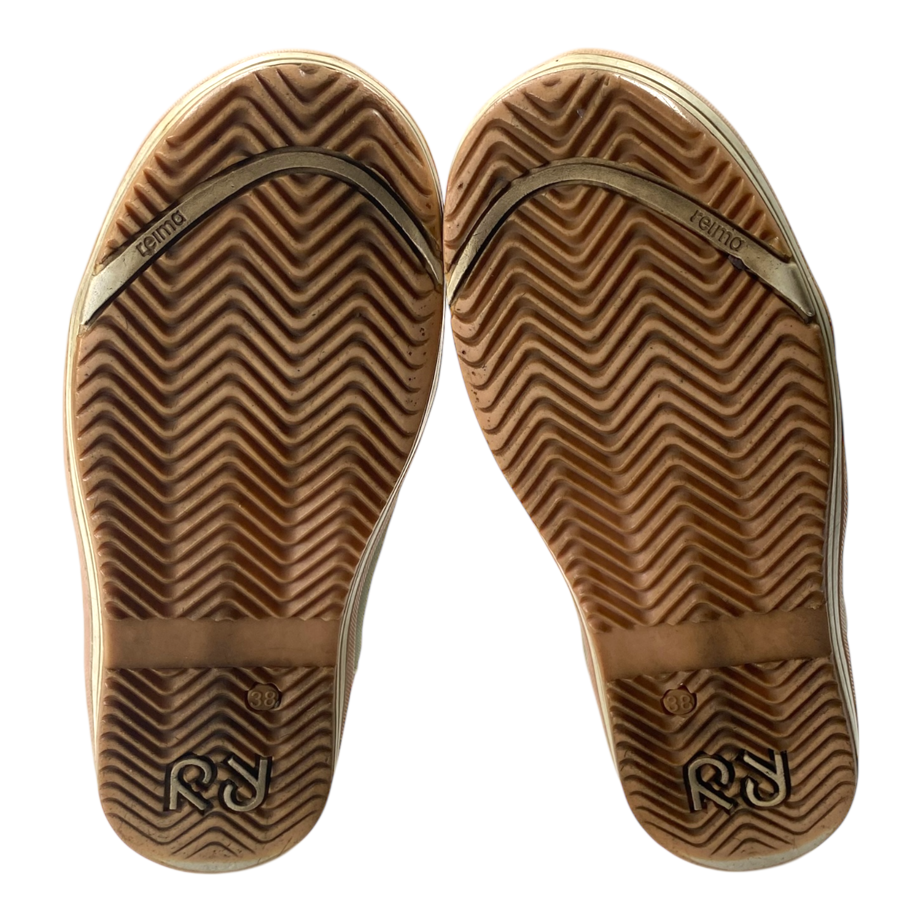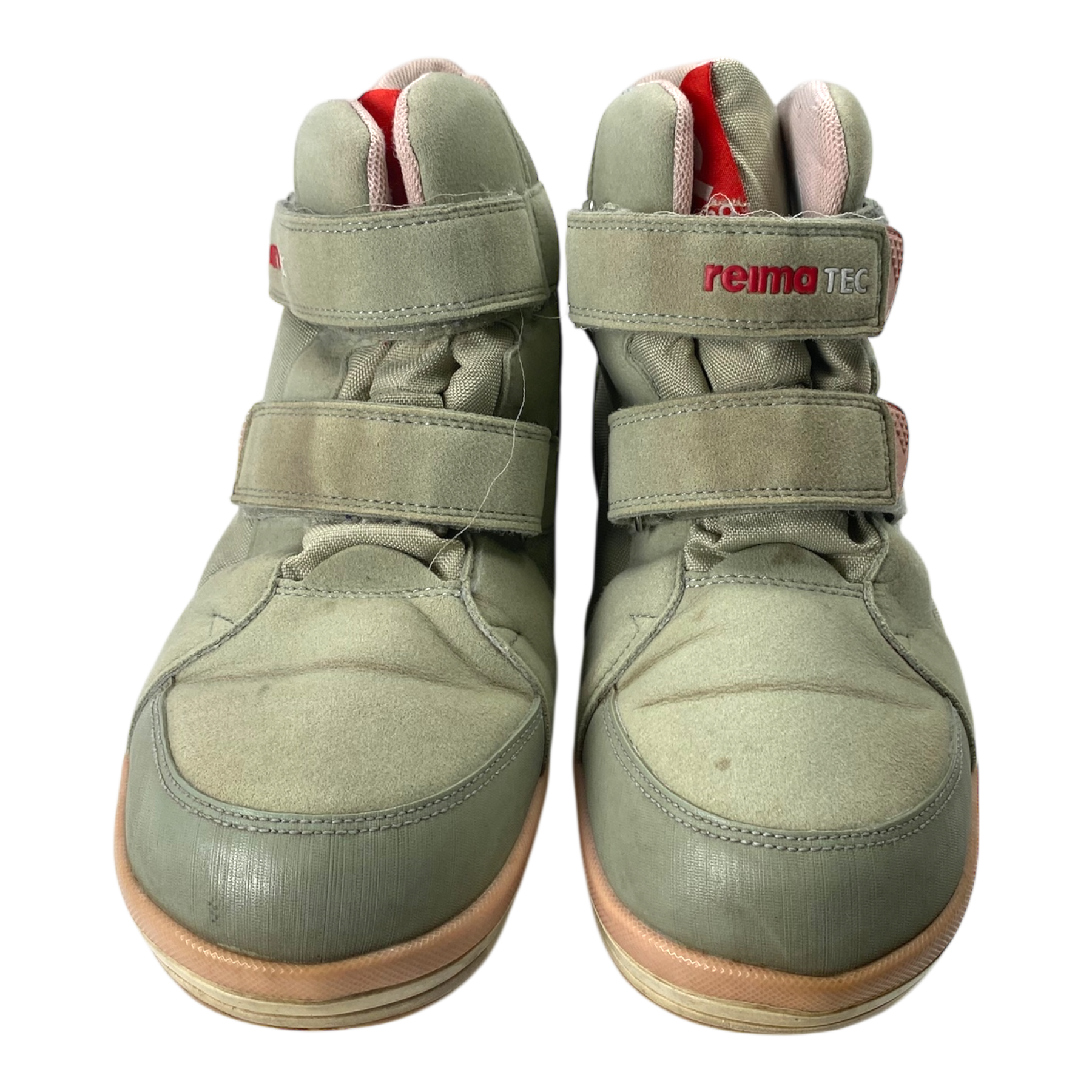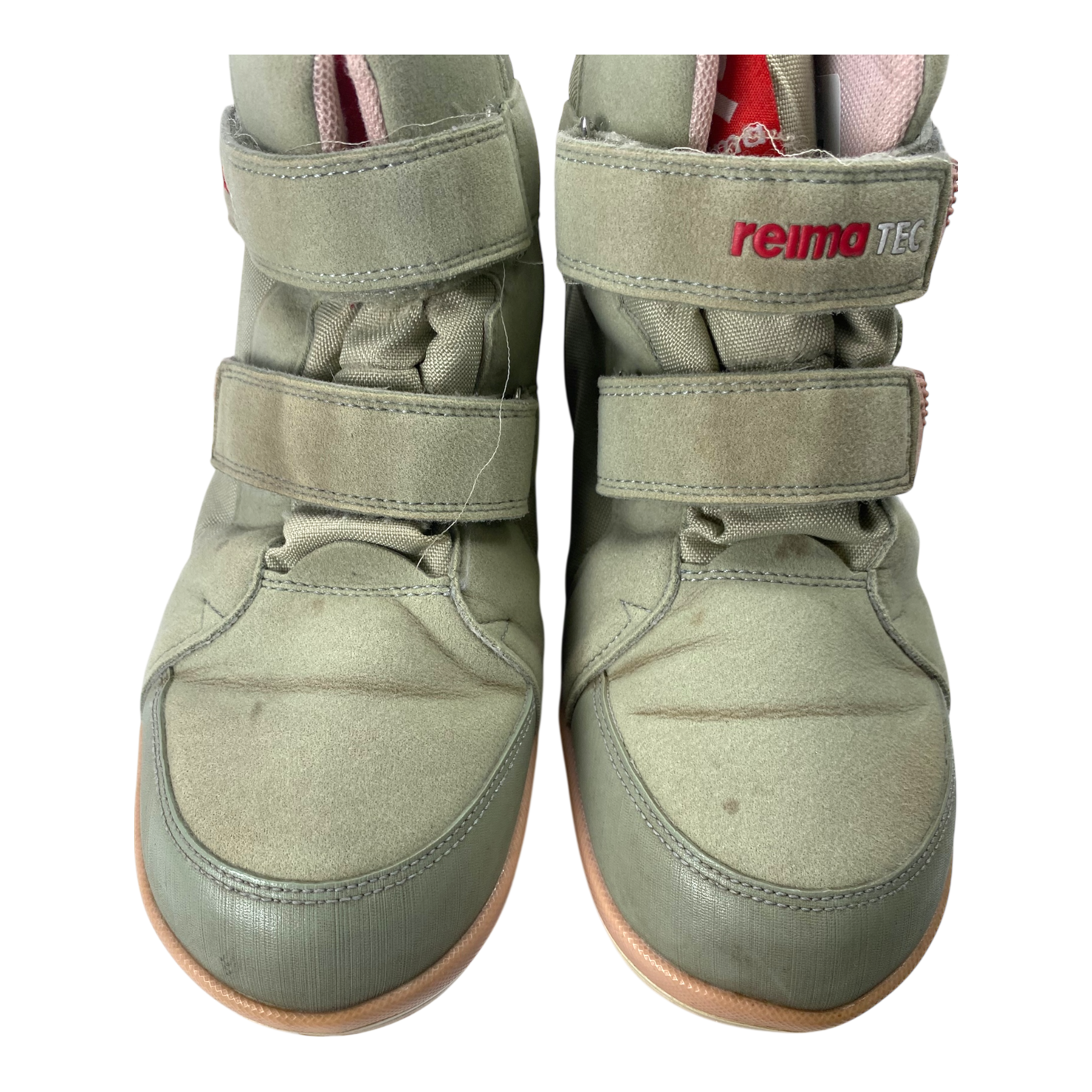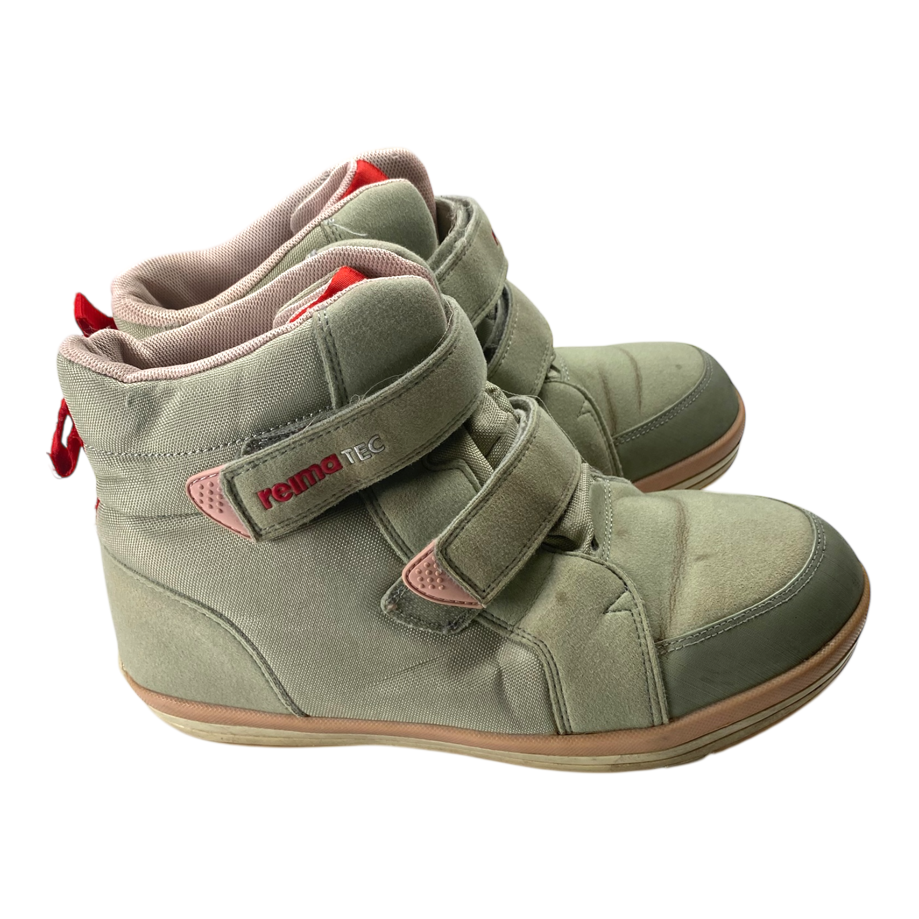 Reima kids' Patter midseason shoes. Originally waterproof and equipped with easy hook-and-loop fastening that gives the shoes a snug fit. The item has some stains as shown in the last picture.