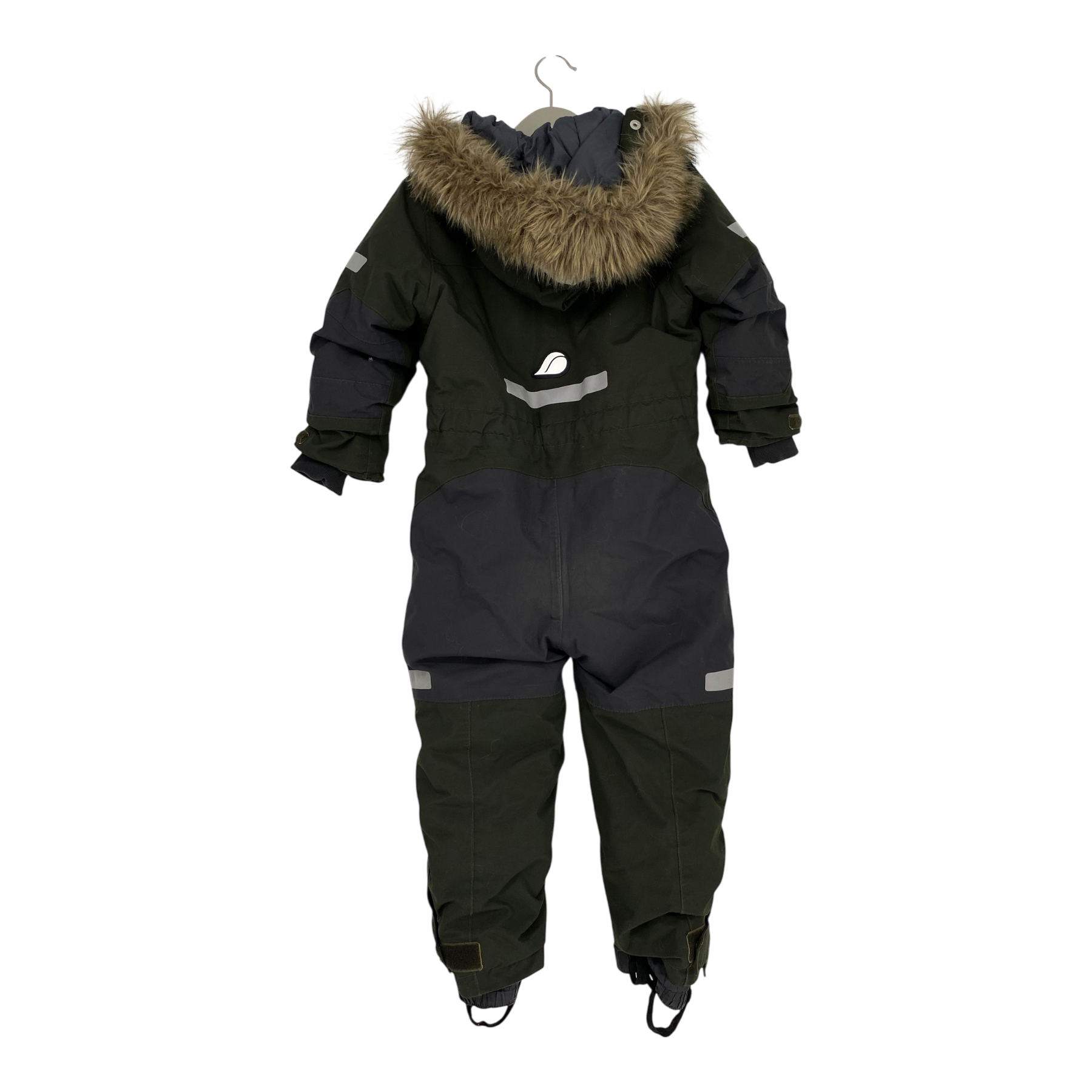 Didriksons winter overall with removable hood and removable faux fur lining and adjustable leg loops. Fits perfectly thanks to many adjustment options. Originally fully waterproof and windproof coverall with warm polyester filling.