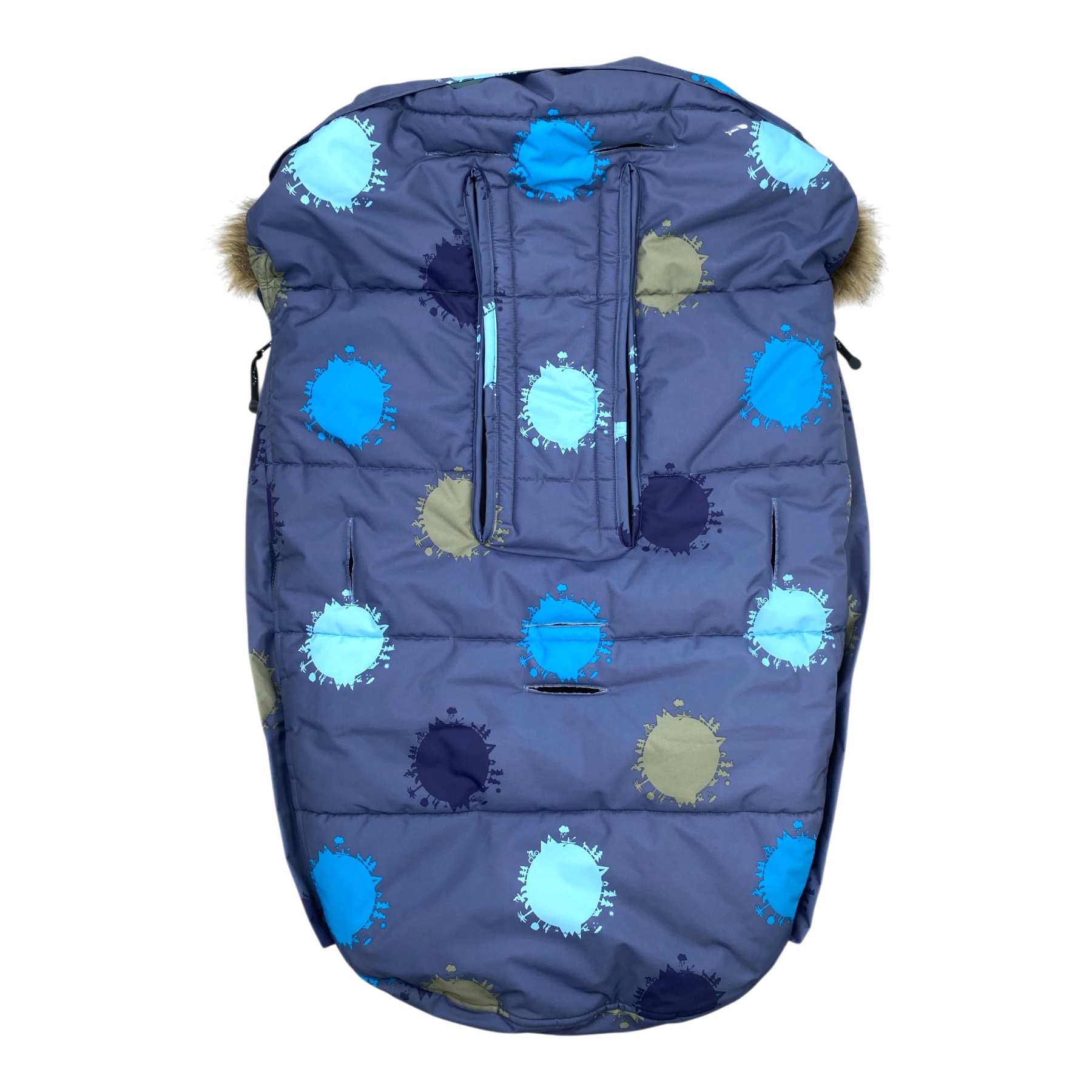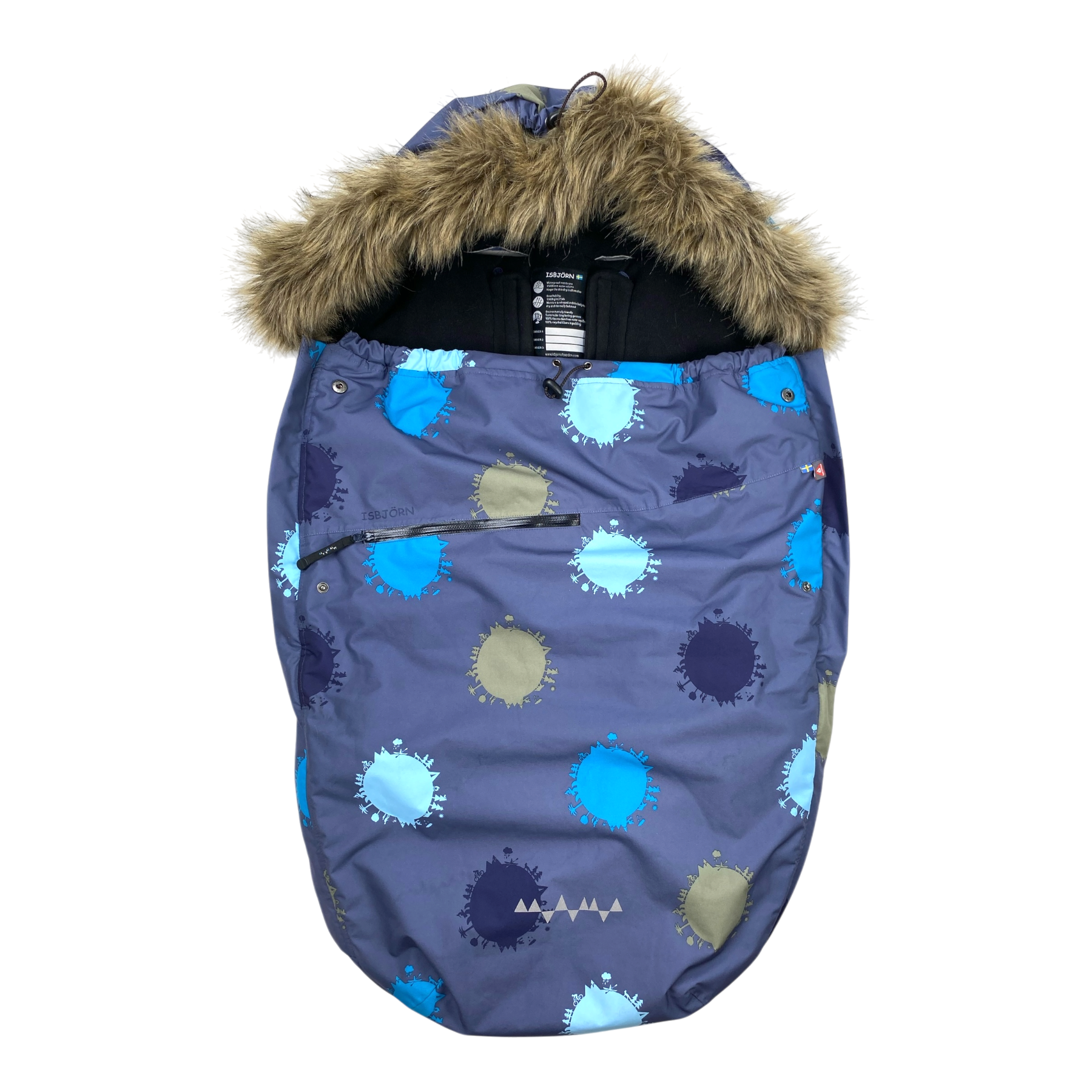 Isbjörn of Sweden Stroller bag is warm and waterproof. Adjustable cord on top, zippers on both sides and small pocket on the front. You can adjust the warmth with removable padding on top part.