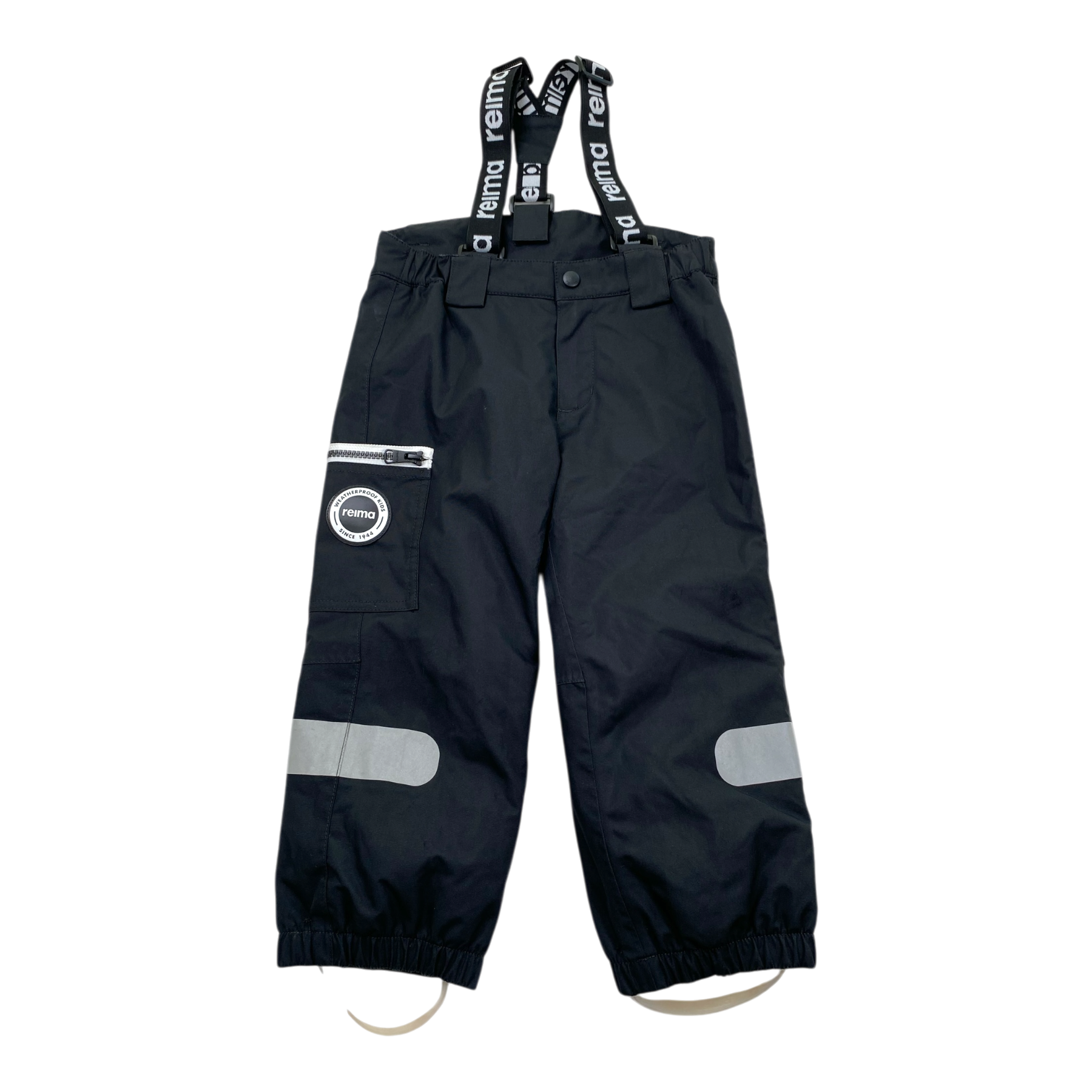Reima Tiksi lightly insulated winter pants in black. This style to suits equally boys and girls alike. On dark autumn and winter evenings, your kid will shine thanks to the large reflecting prints. The suspenders help keep the pants up.
