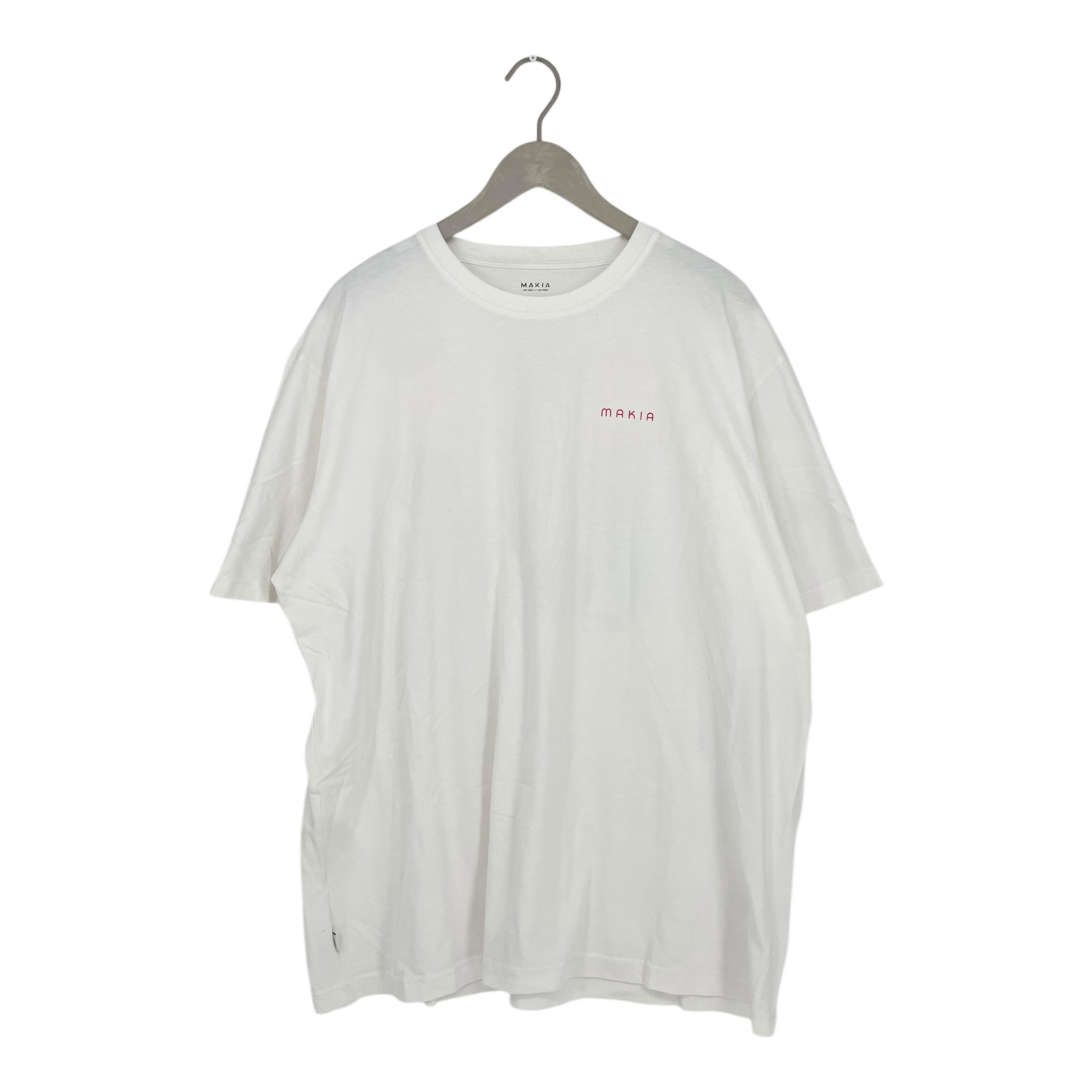 Makia relaxed fit t-shirt with a large Makia print on the back.