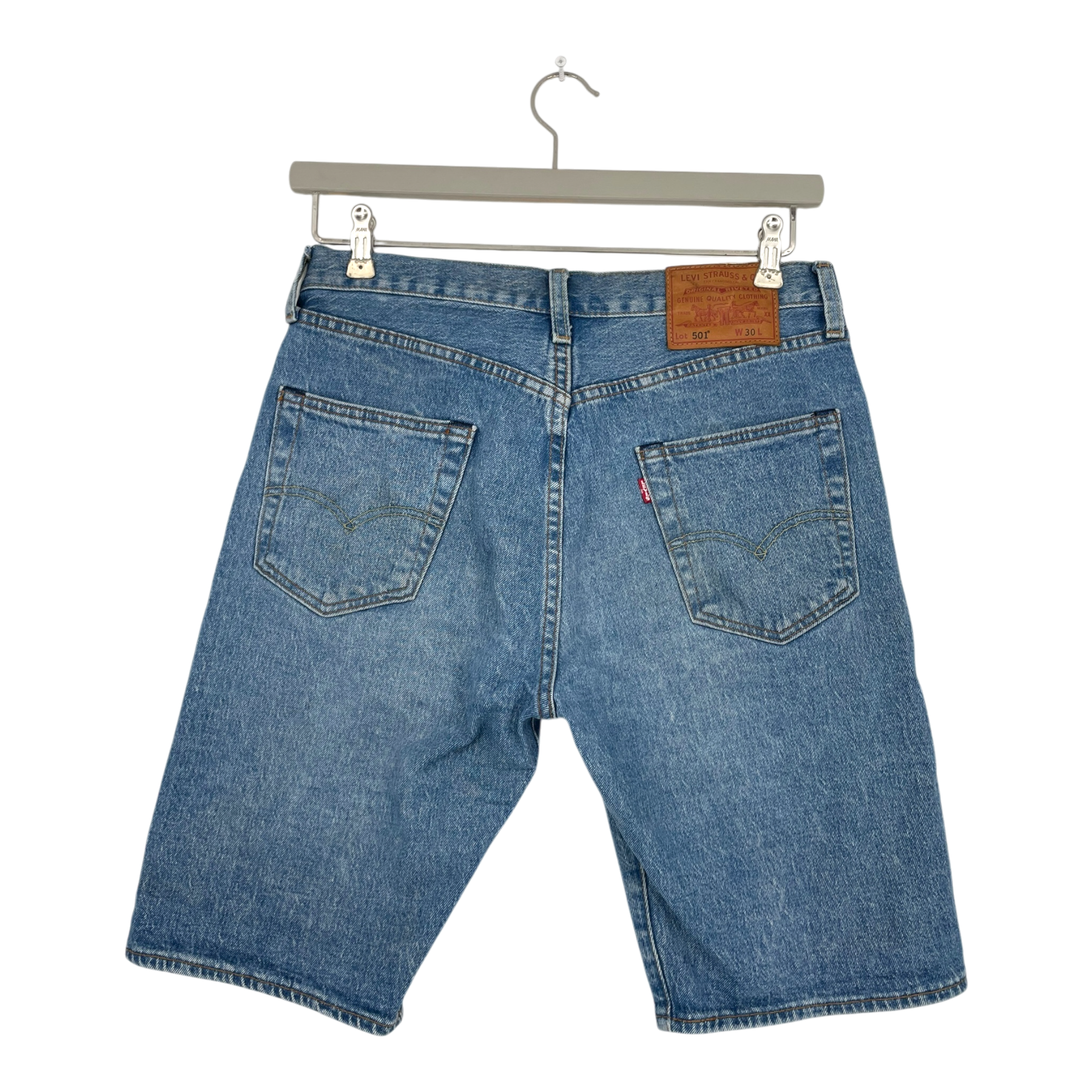 Levi's denim shorts. Waist size 30 inches. Some light staining as shown.