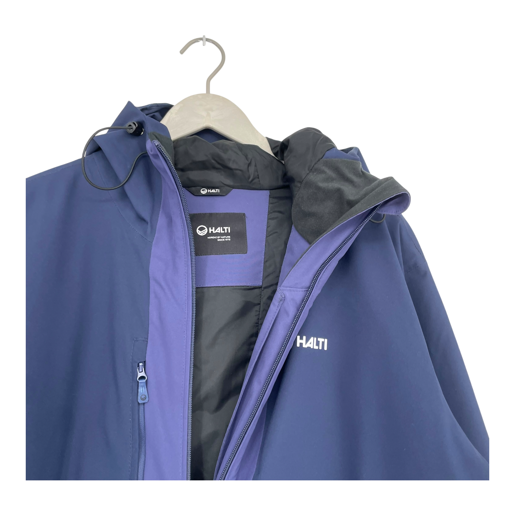 Halti men's DrymaxX ski jacket with a zipper closure in the front, adjustable hood, high neck, three pockets on the front and ski pass pocket on the sleeve. The jacket has a snow lock, adjustable hemline and cuffs.