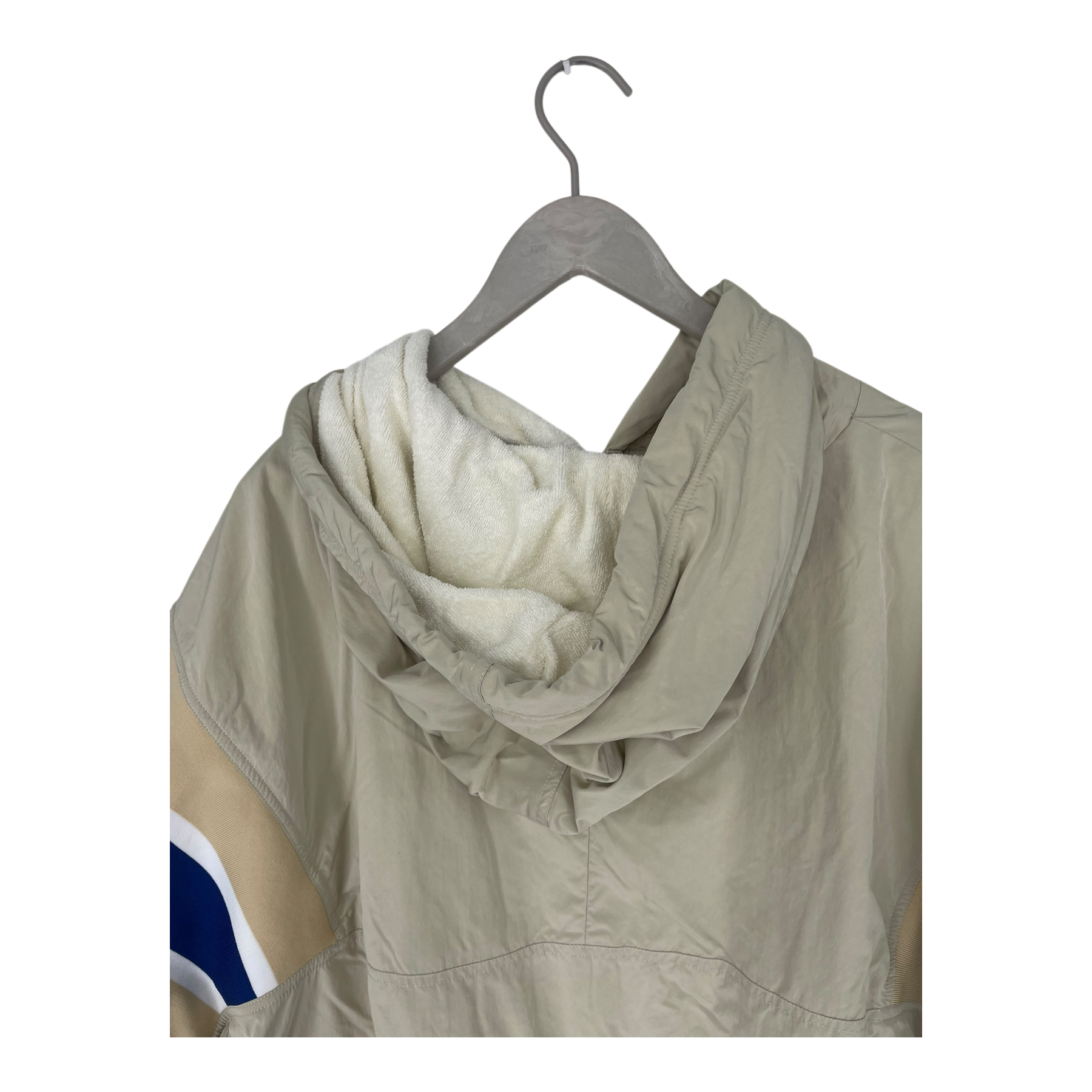 Embassy of Bricks and Logs Covelo sports parka jacket with a throwback style striped rib details in sleeves. Soft terry cloth lining inside the jacket and hood.