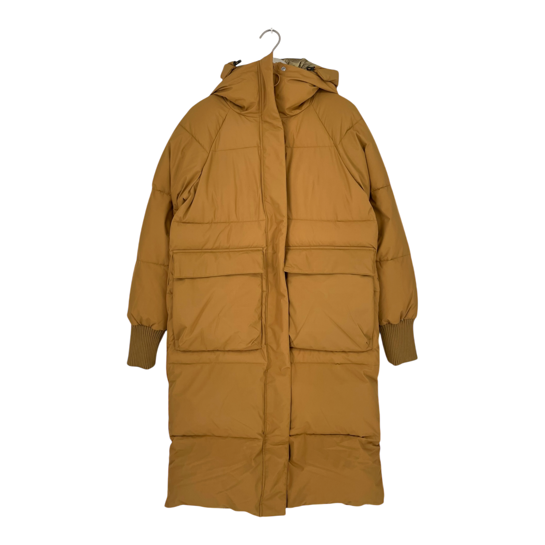 Embassy of Bricks and Logs Ry puffer jacket with its extra-long cuffs and slim, long silhouette, the Ry parka is easily one of favourite winter staples. Waterproof, super warm and with an extra high collar, this jacket is everything you need. Some very light stains.