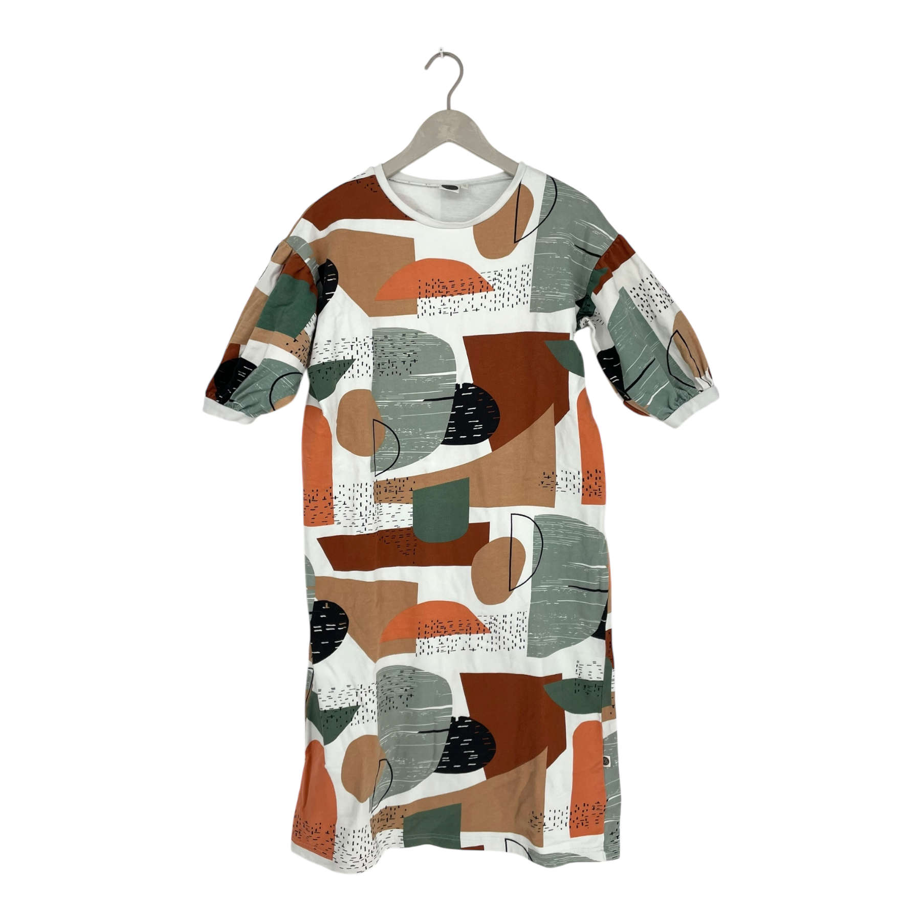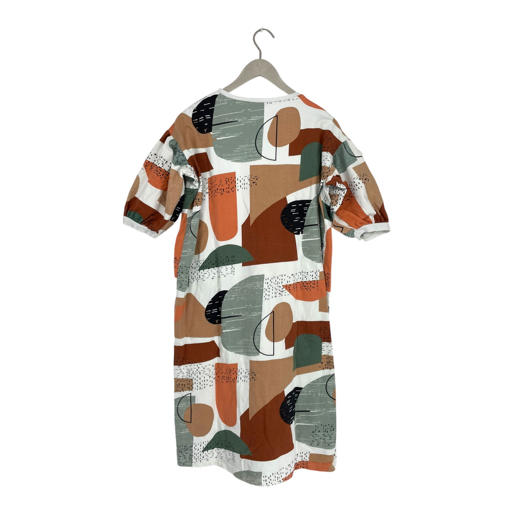 Mainio dress in a graphical print. Short puff sleeves and round neck.