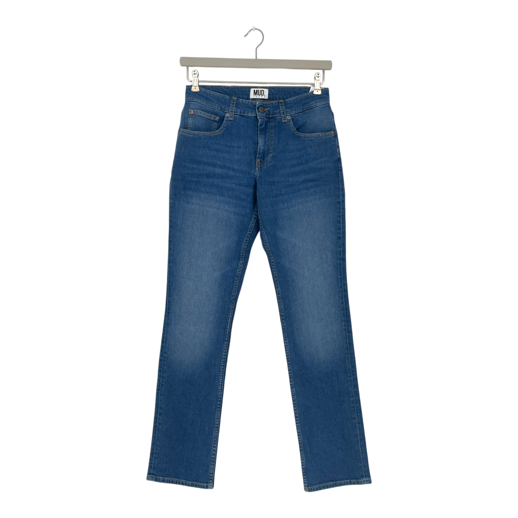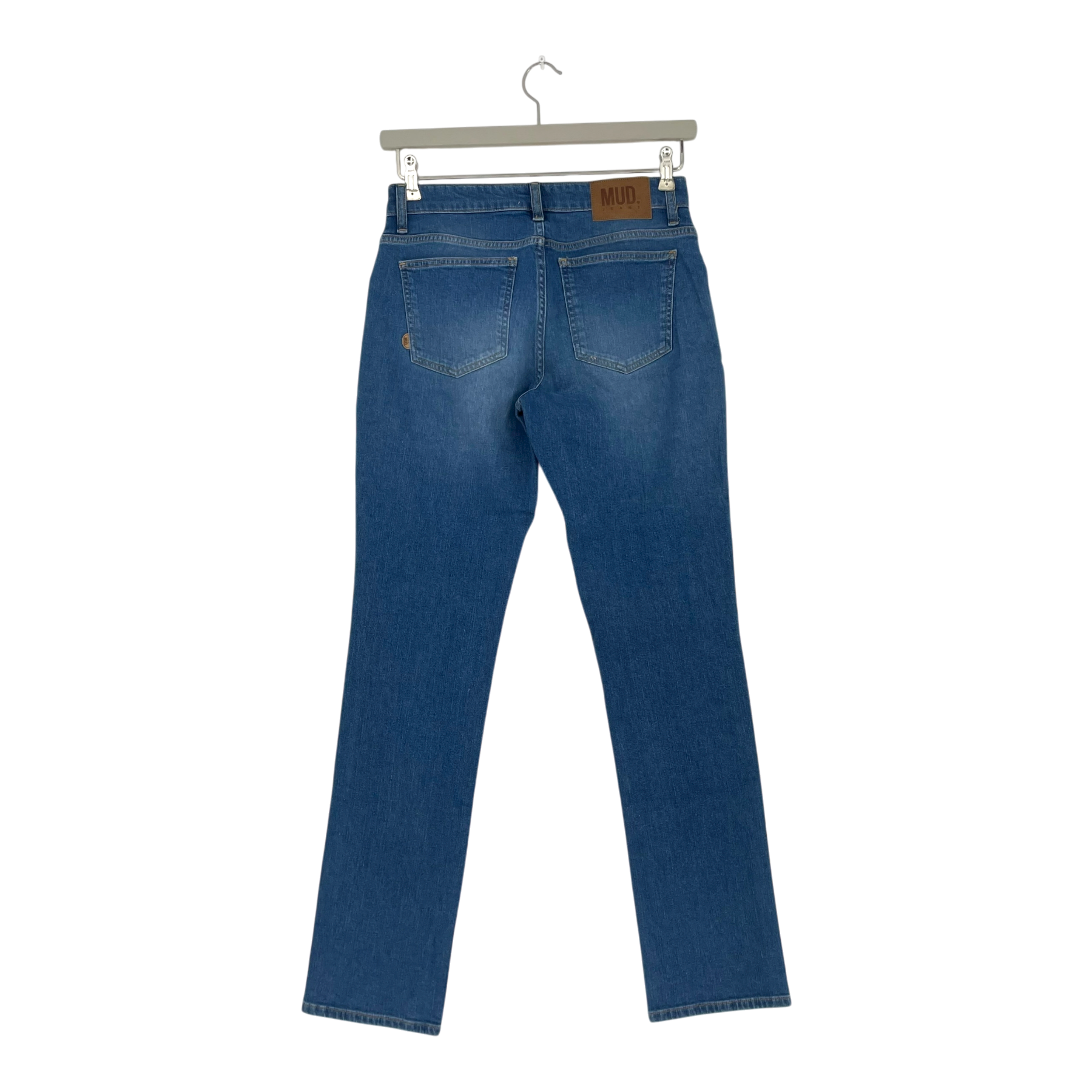 Mud jeans Logan mid-rise slim jeans. They highlight the figure with a slim fit and mid waist. They are tailored through the hips, with a gentle taper towards the ankles. Designed for comfort using a stretch fabric.