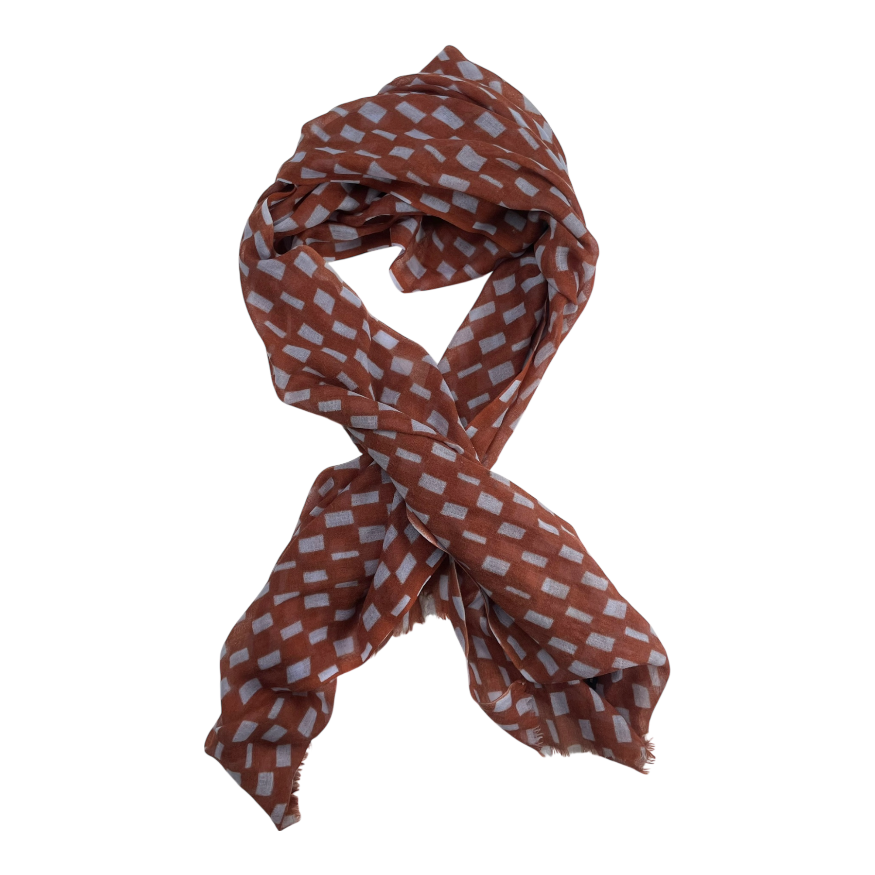 Marimekko women's woven scarf in a blue and brown print.