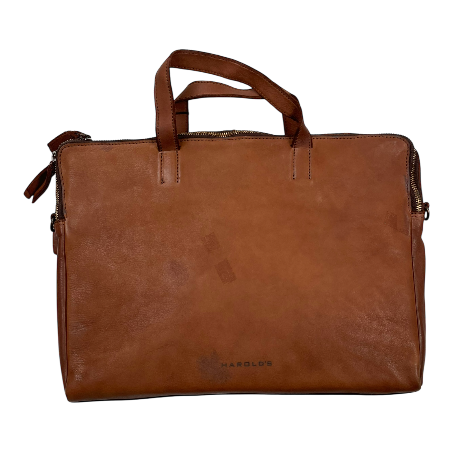 Harold's Bags Submarine Notebook carry case is made of washed cowhide with a slightly shiny surface and rich feel. The zippered main compartment features a padded laptop compartment, a large zippered pocket, two zippered compartments, and two slip pockets. This case offers everything you need for a comfortable notebook bag without appearing too formal. Comes with adjustable and removable straps.