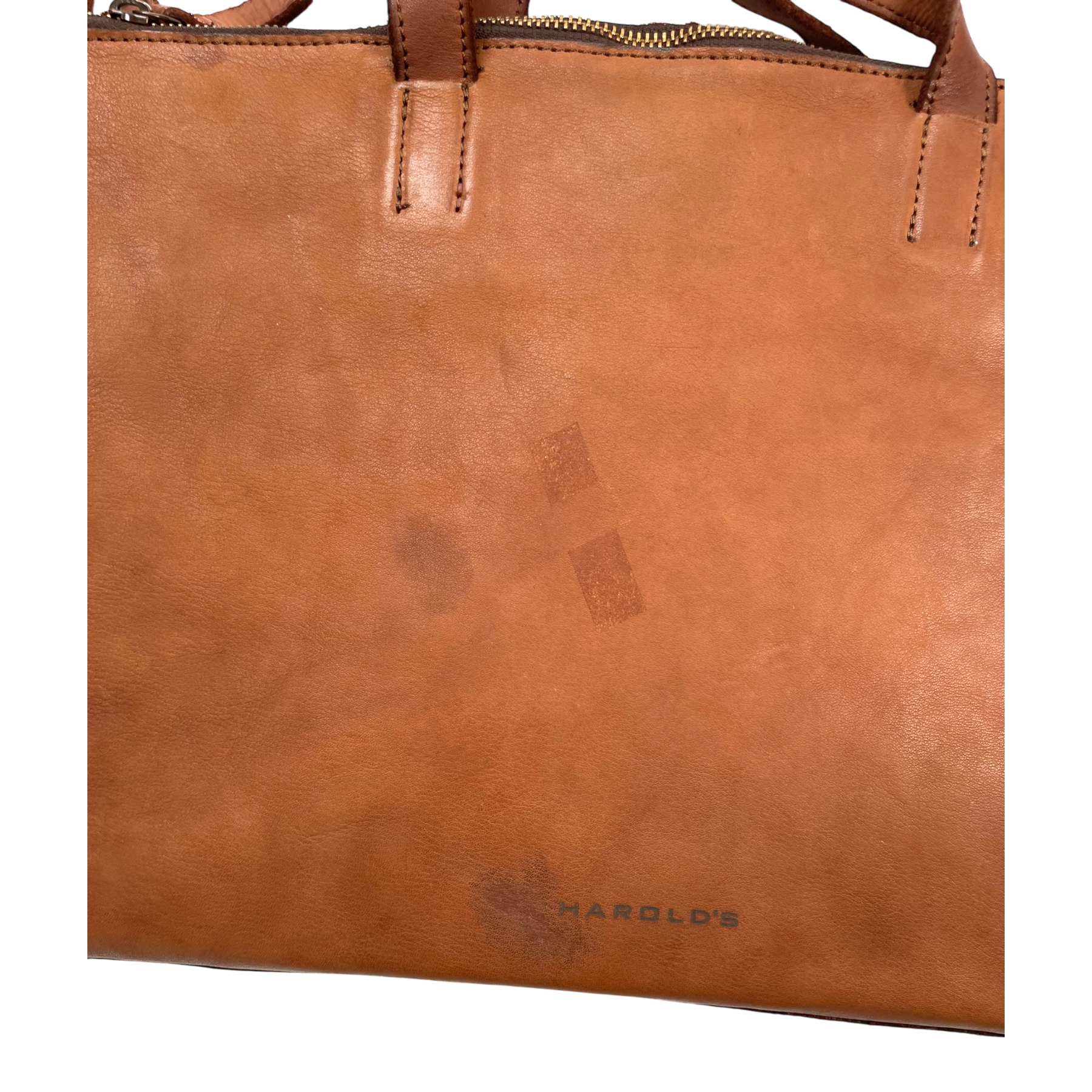 This item has some marks on the leather in the front and back as shown.