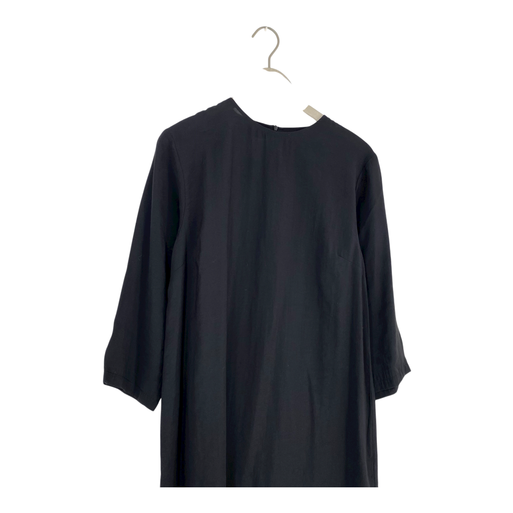 Makia woven flowy dress with 3/4 sleeves, small slit on the hemline and zipper closure on the back.