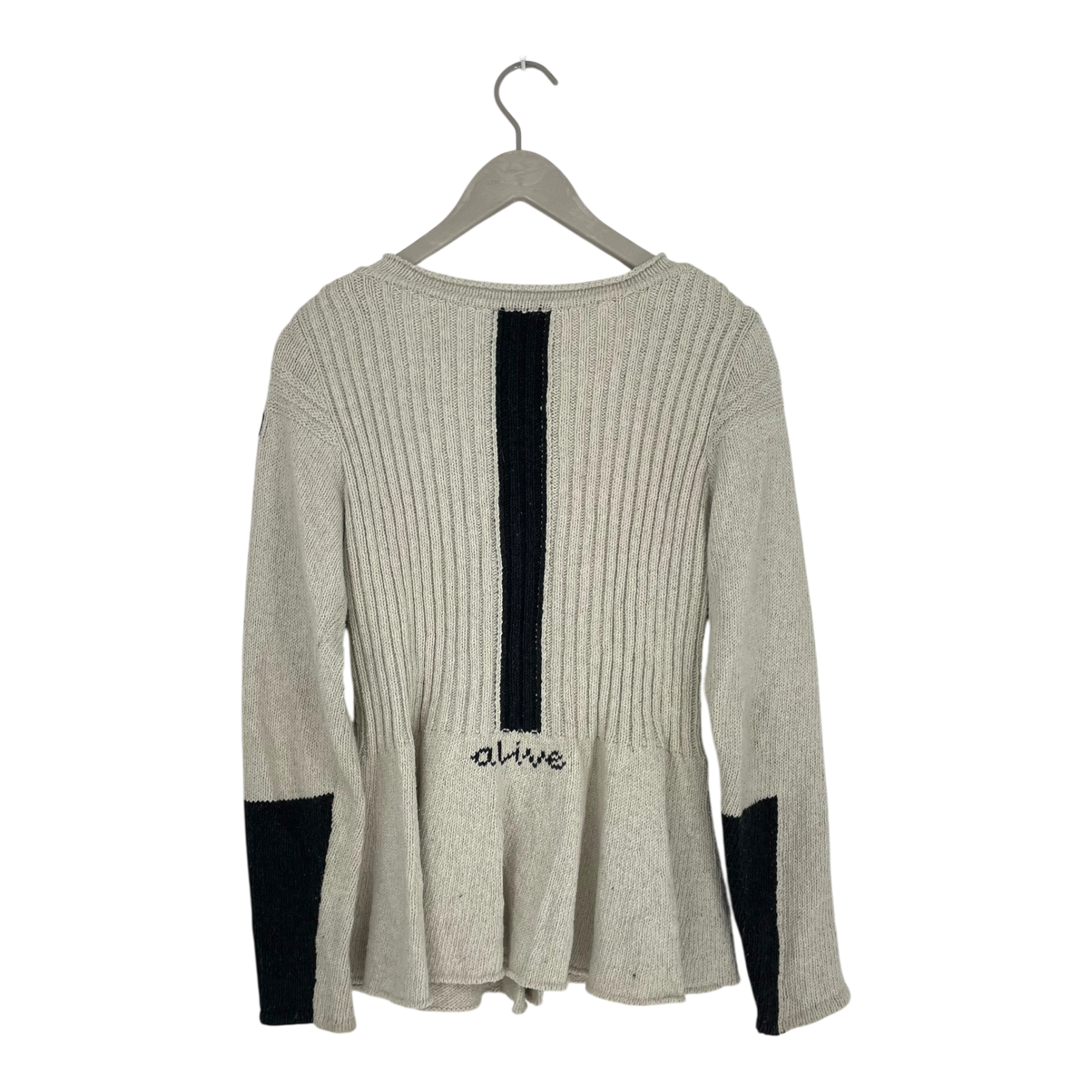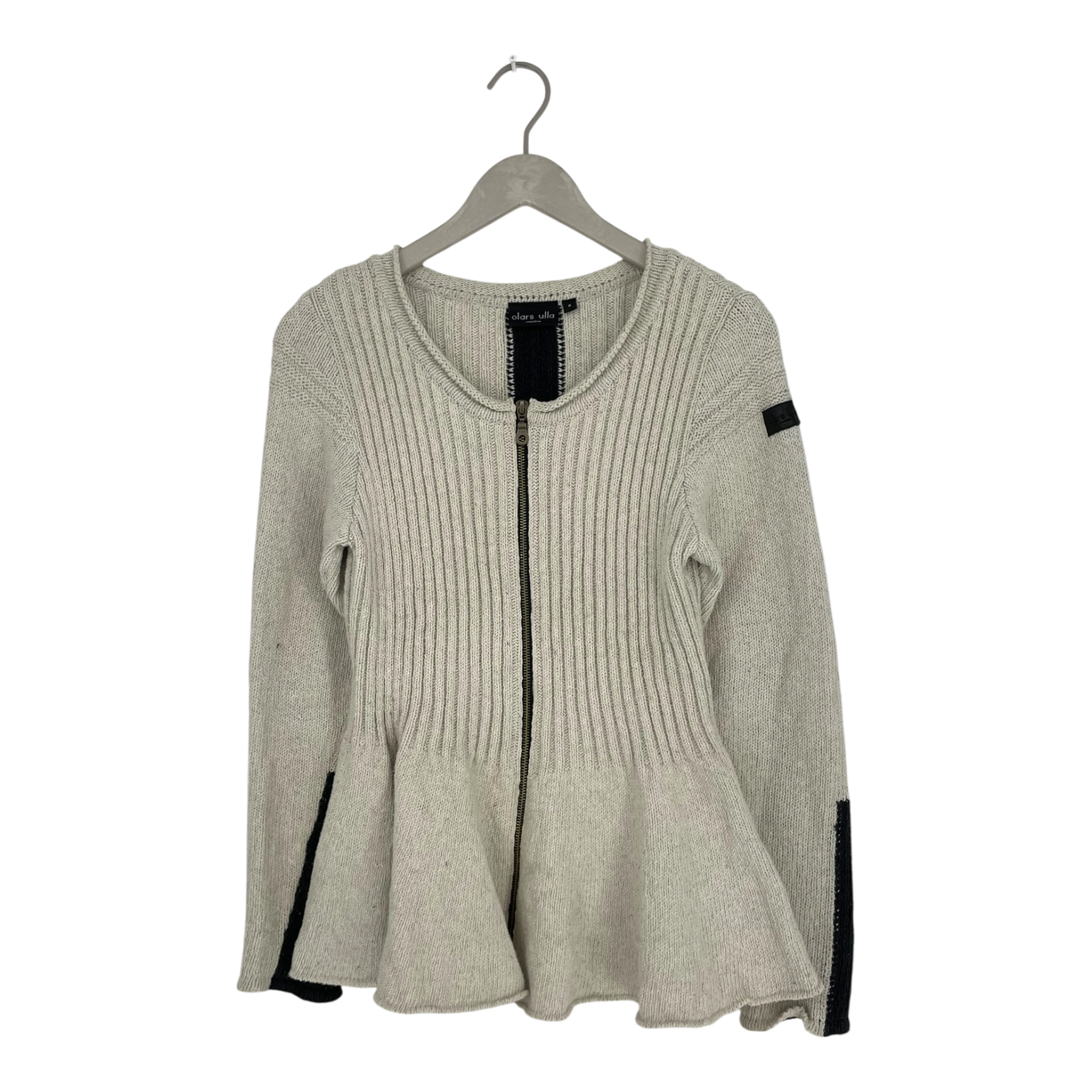 Olars Ulla cotton knit shirt with round neckline, zipper on the front, black knit detailing and flared hem.