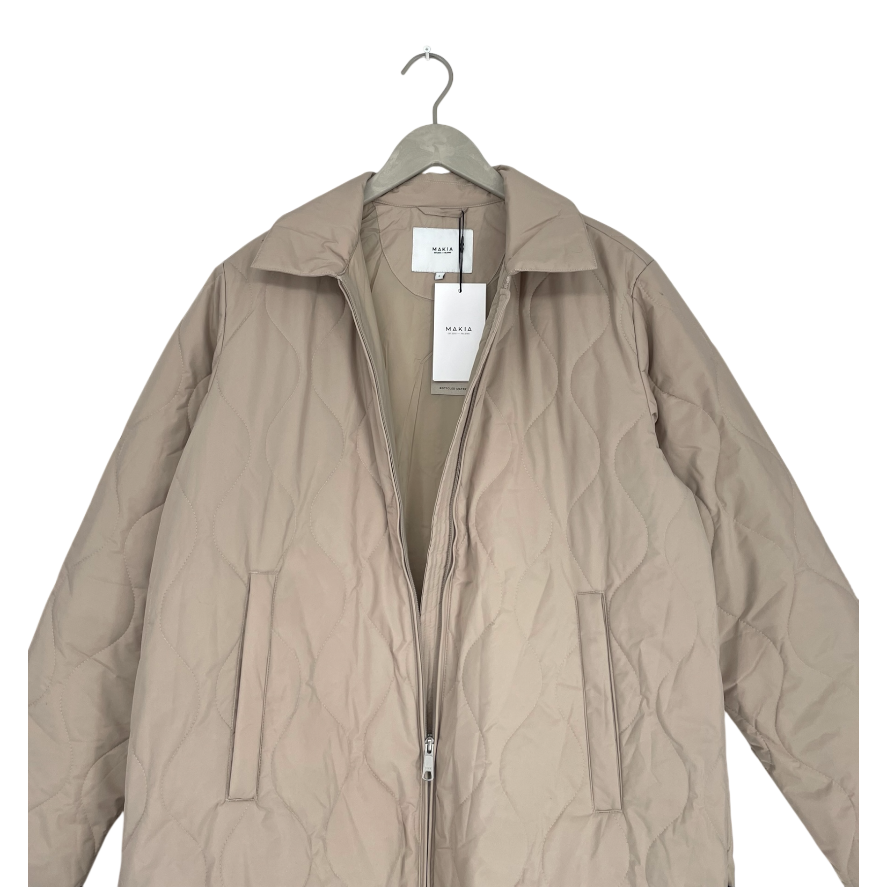 Makia Rita Coat is a lightweight quilted jacket with a regular fit. It’s an excellent choice for spring and cool autumn days. The Rita Coat features insulation made from 100% recycled polyester, providing comfortable warmth without a heavy feel. A classic spread collar completes the clean, timeless look. The jacket is finished with a two-way YKK front zipper and fleece-lined zippered front pockets for added comfort.