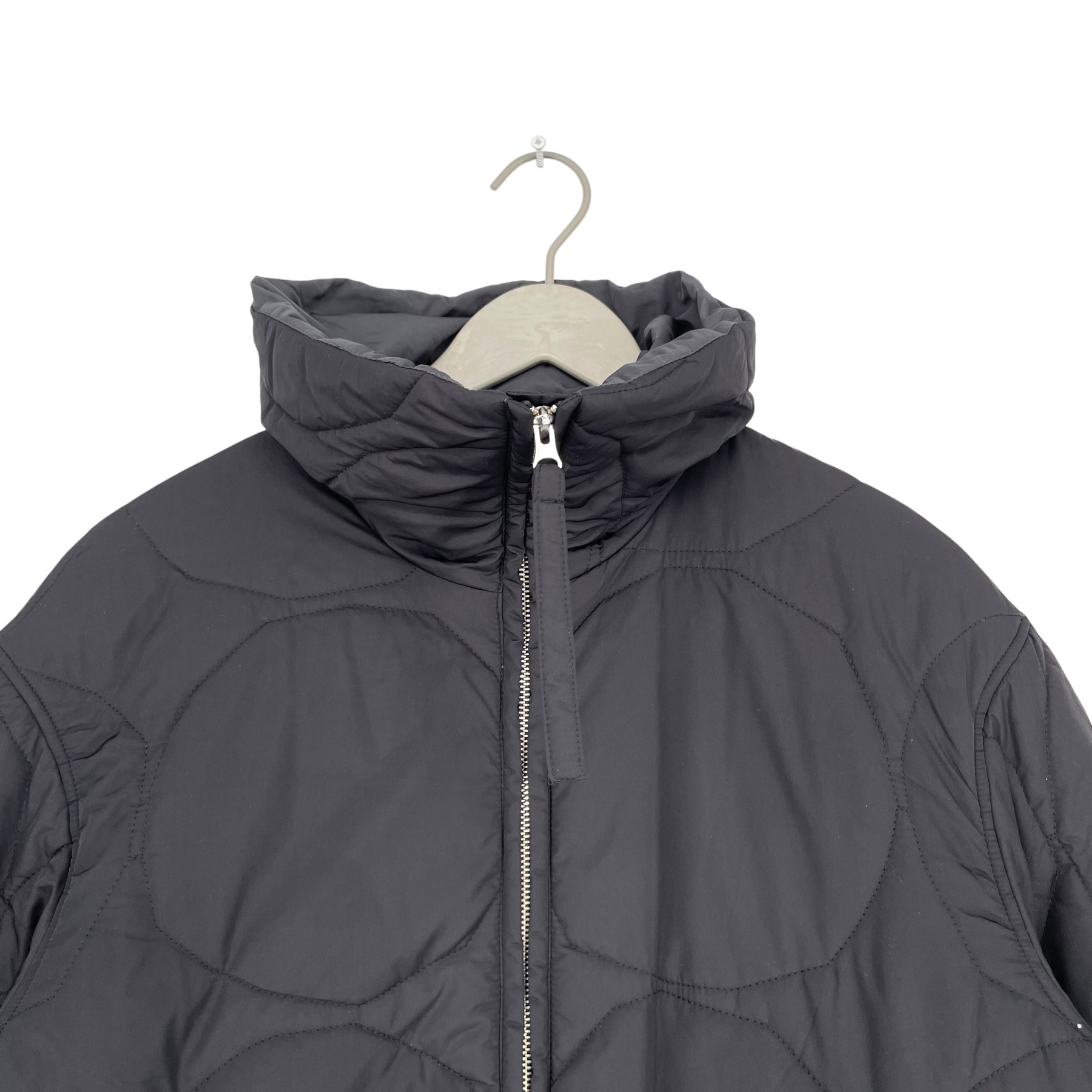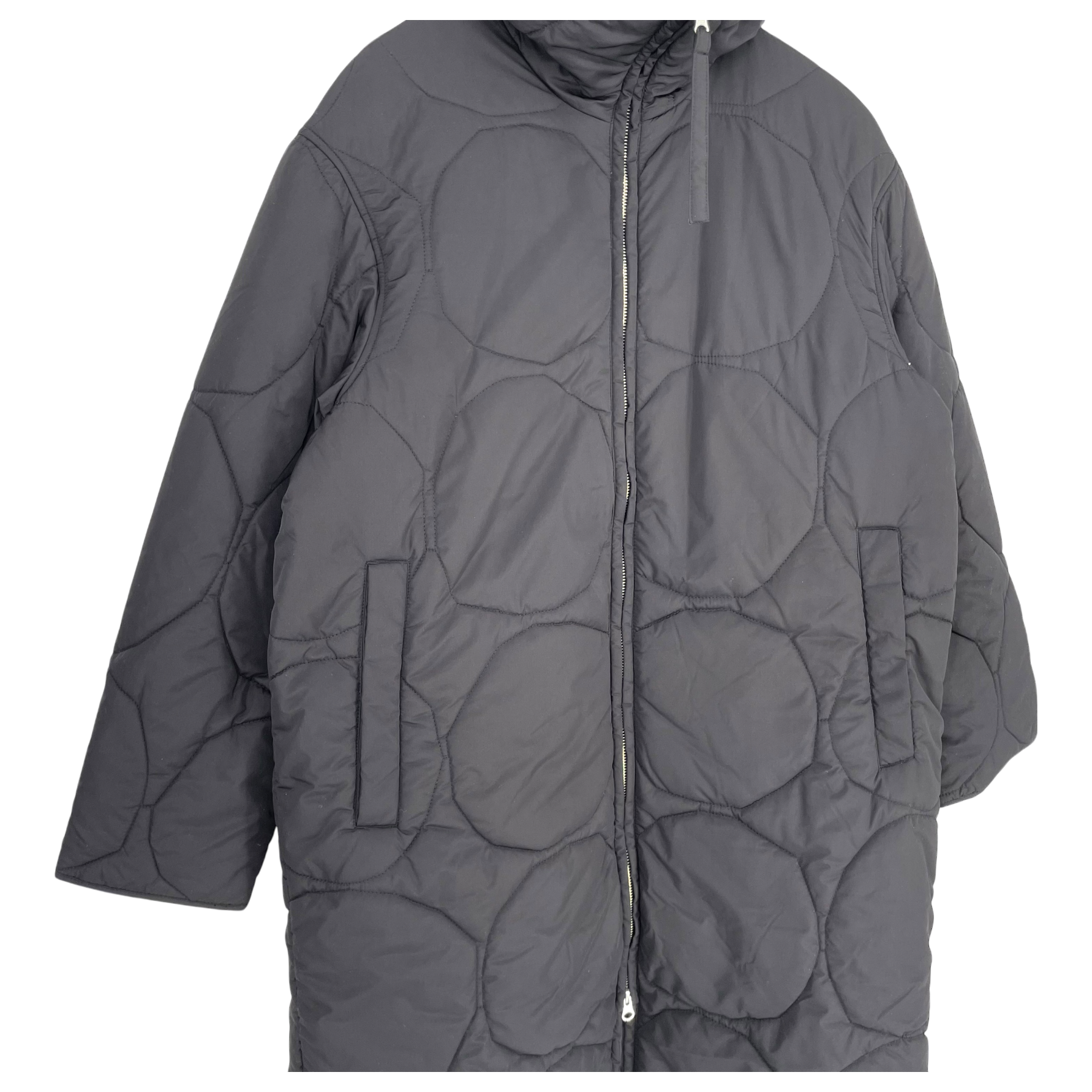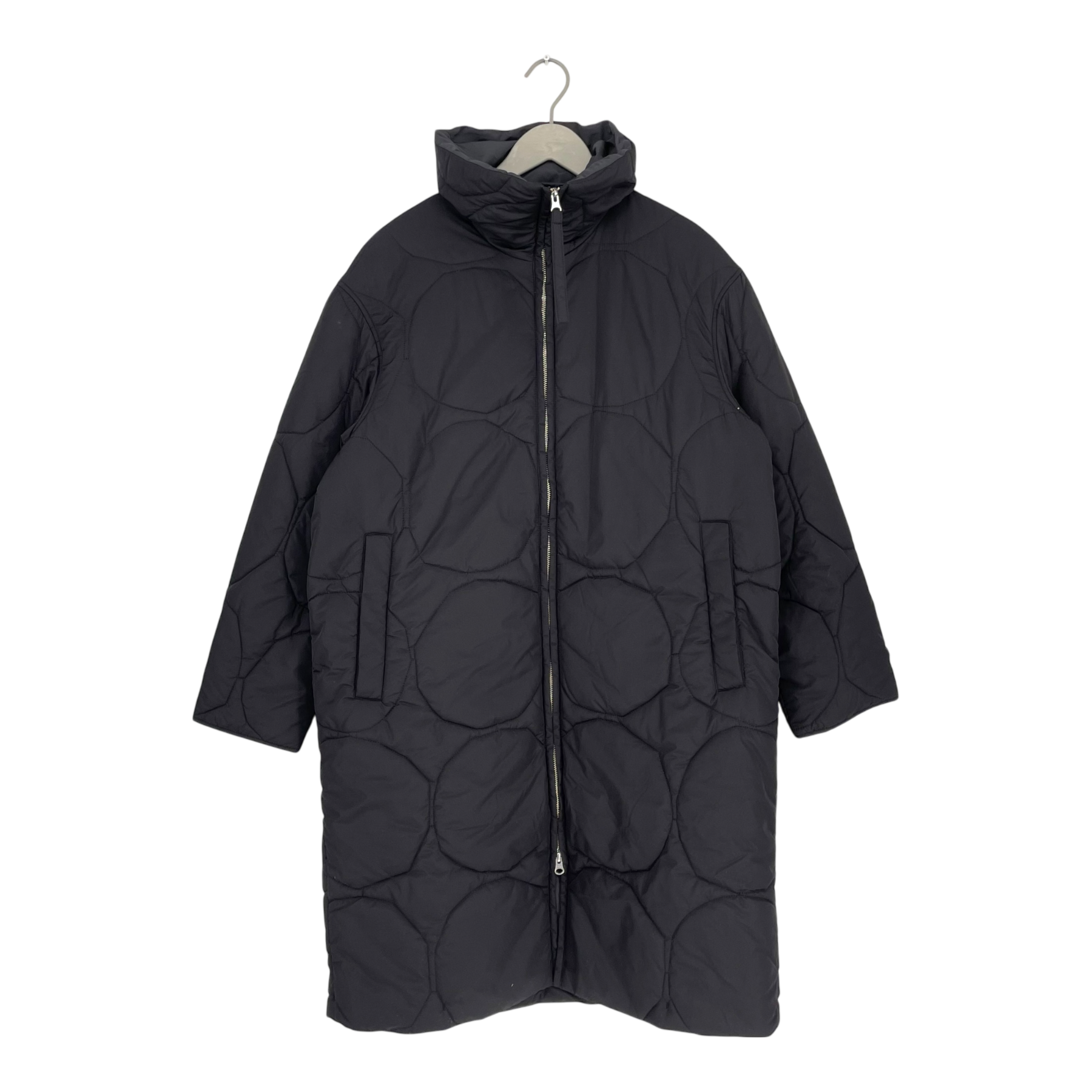 Marimekko's Kurtiini Kivet lightweight padded winter jacket with quilted Kivi print has a relaxed, straight fit. The jacket has a high collar, a two-way zipper and snap button closure pockets on the sides. The cuffs can be adjusted with snap buttons.