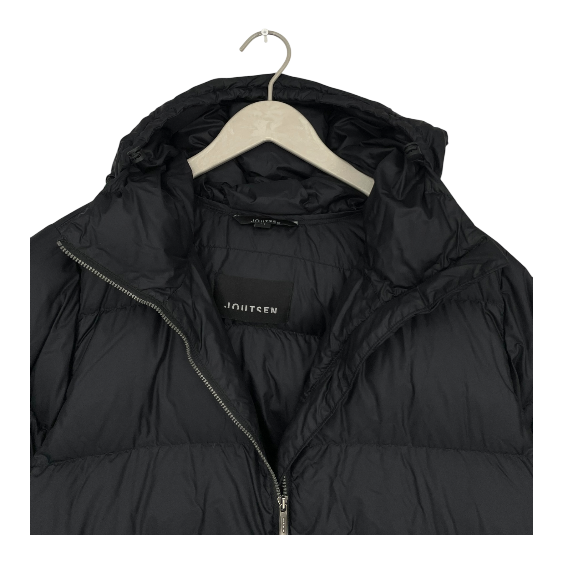 Joutsen Silvia jacket is a down jacket perfect for the colder weathers. There a large horizontal stitching and two front pockets with zippers. The double-slider fastening zipper adds comfortability and daily functionality in the front. There is a large warm adjustable hood that can be worn up or down according to weather and the sleeves can be rolled up for a better fit.