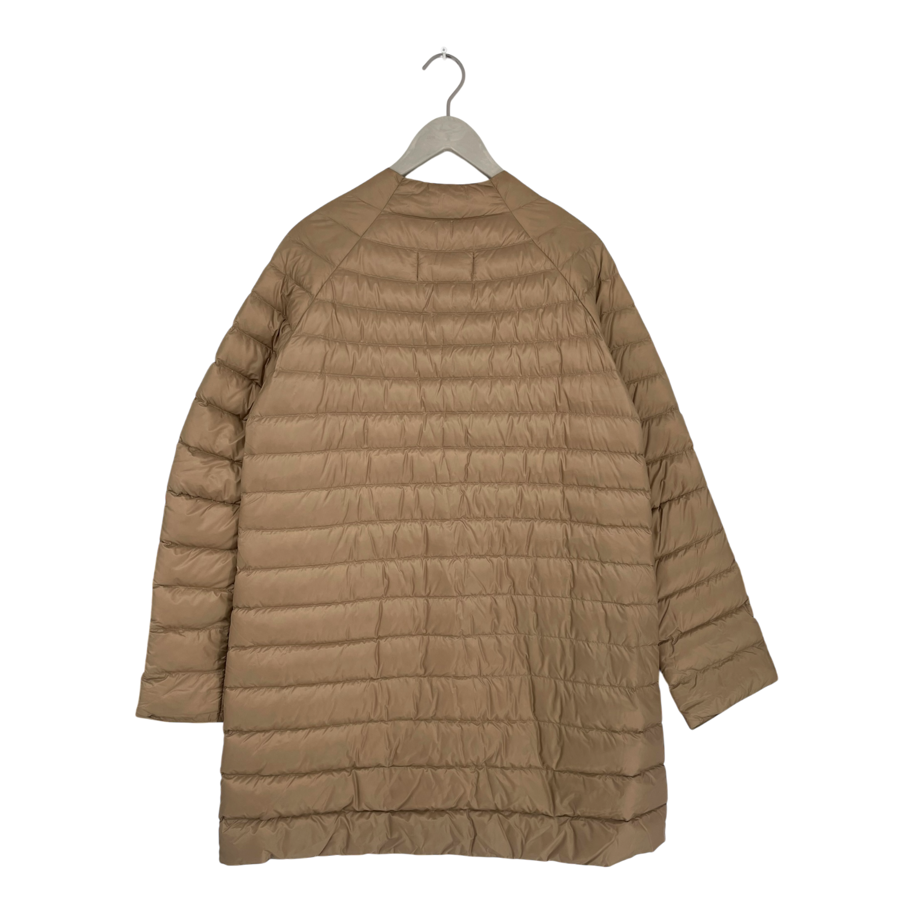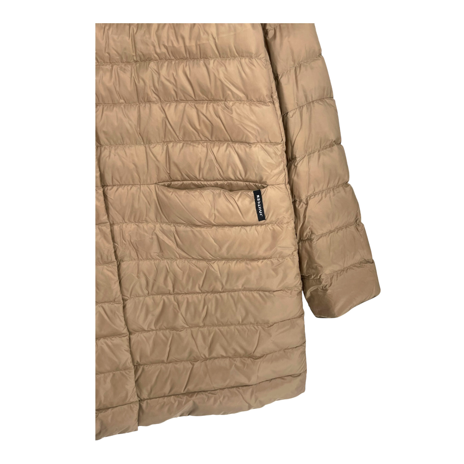 Joutsen Vuokko down jacket is as light as a cloud and as soft as a marshmallow. Its sleek silhouette and weightless warmth make it the perfect choice for cool mornings, gentle evenings, or air-conditioned offices. The jacket closes with snap buttons and features discreet pockets also secured with snaps, making it a carefree companion for any summer situation – easy to put on and a delight to wear. In the Lollipops collection’s ultralight fabrics, individual darker down clusters may occasionally show through the material.