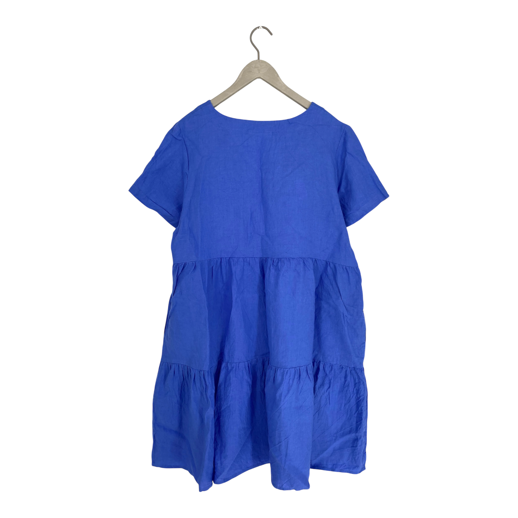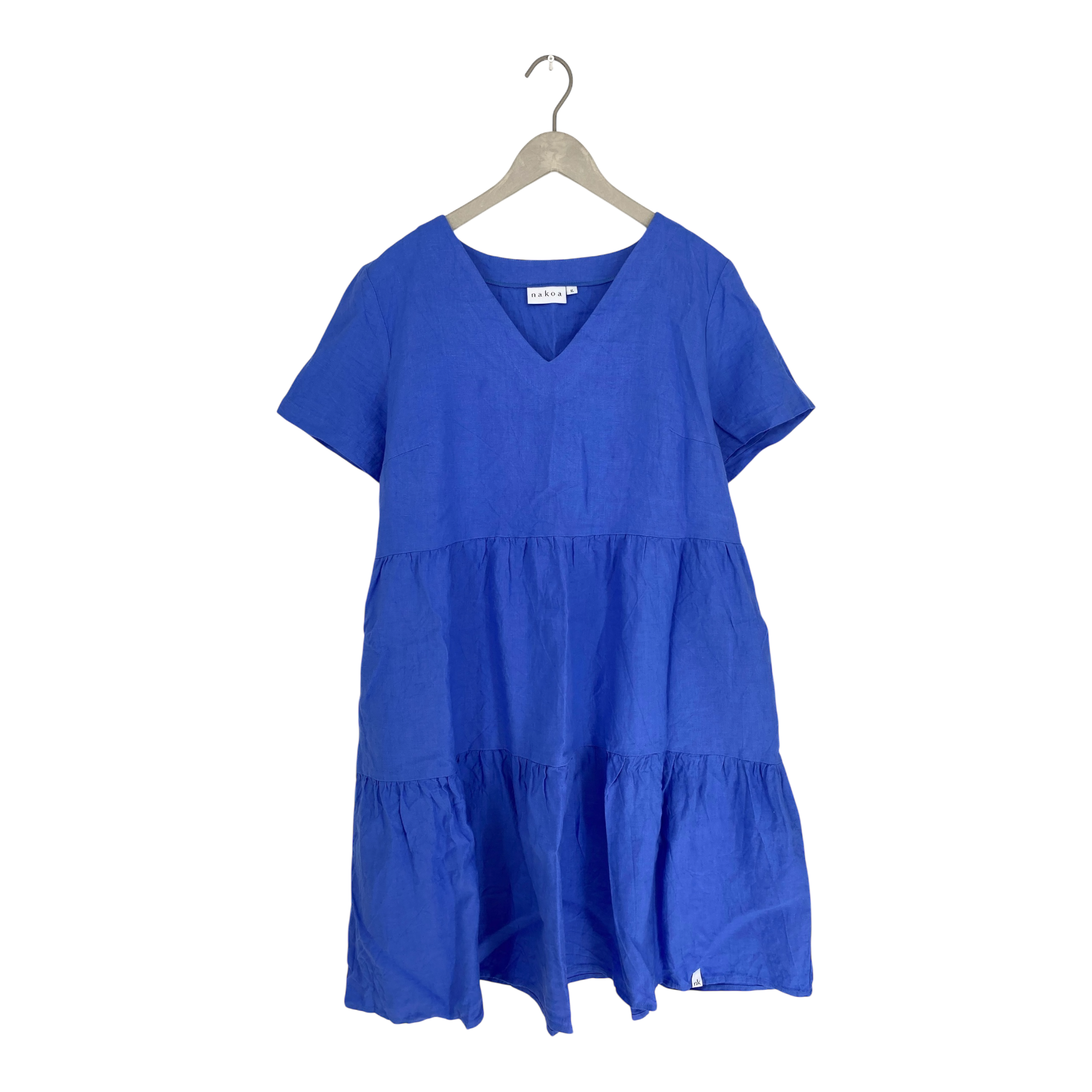 Nakoa layered linen dress with a v-neck, side pockets and short sleeves.
