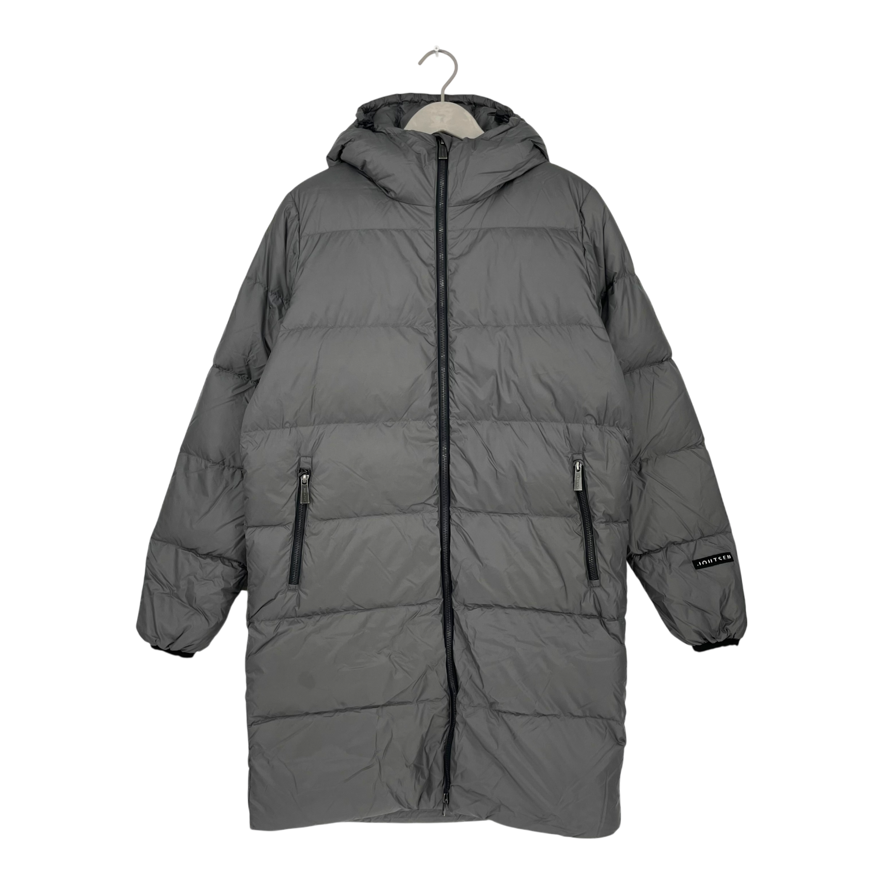 Joutsen Silvia jacket is a down jacket perfect for the colder weathers. There a large horizontal stitching and two front pockets with zippers. The double-slider fastening zipper adds comfortability and daily functionality in the front. There is a large warm adjustable hood that can be worn up or down according to weather and the sleeves can be rolled up for a better fit.