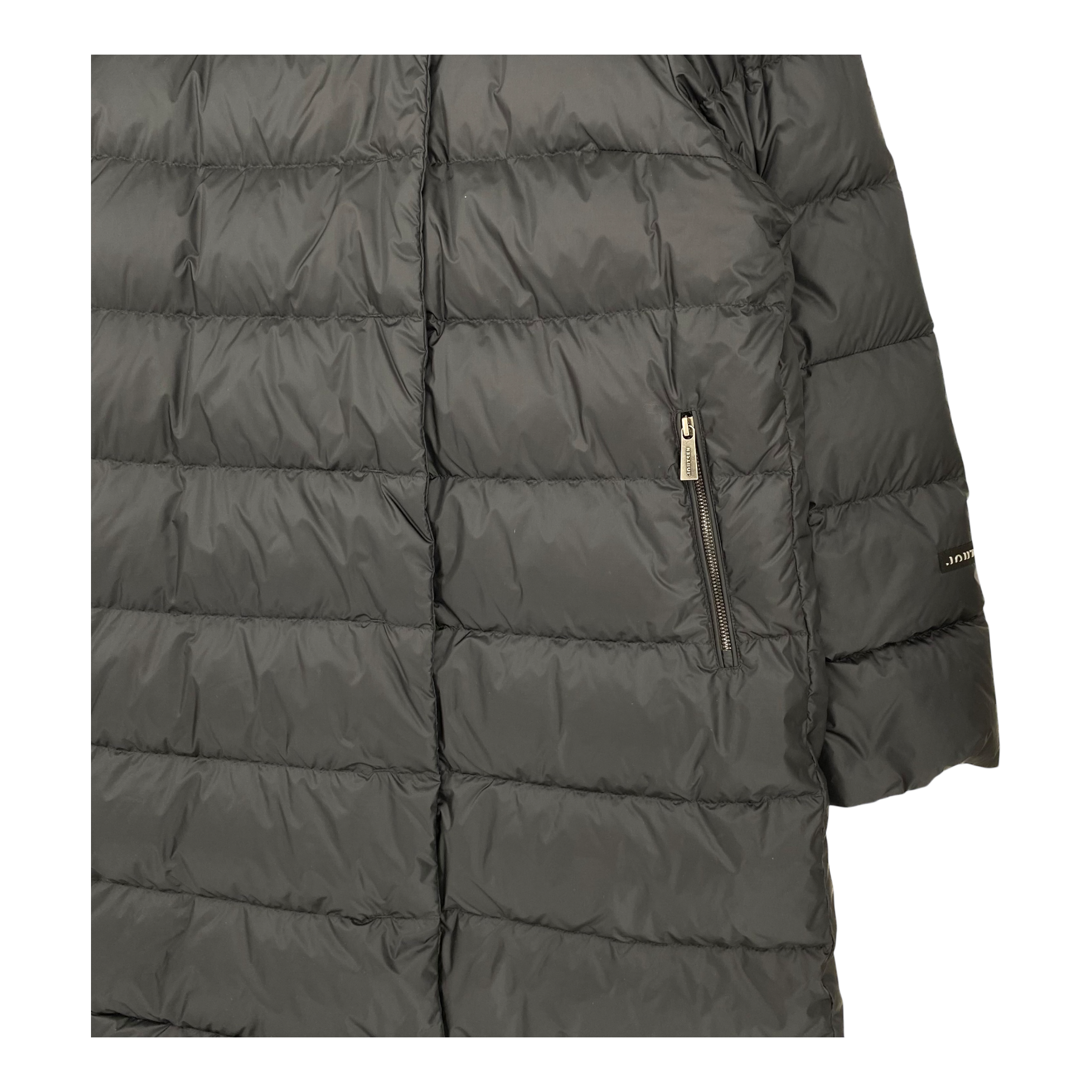 Joutsen Ilona jacket is a light down jacket with horizontal stitching. This jacket is perfect for fall, spring and for different winter weathers when layered underneath. There is a snap button closure in the front that is placed slightly more to the left side. This jacket has a large hood and two side pockets with zipper closure. The cuffs can be folded for a better fit.