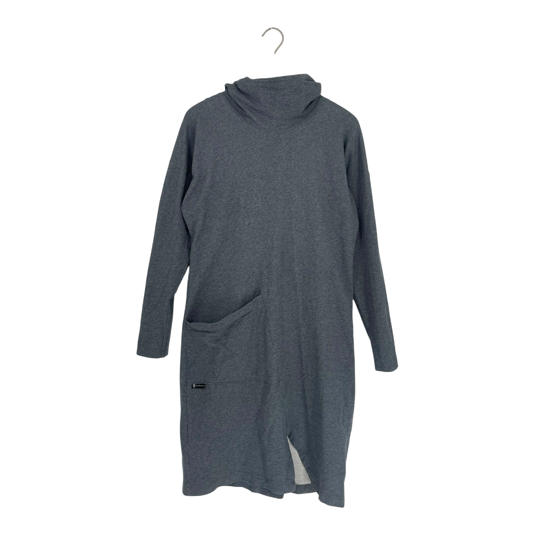 Ommellinen hoodie dress with a diagonal pocket, a hood and a slit cut in the front.