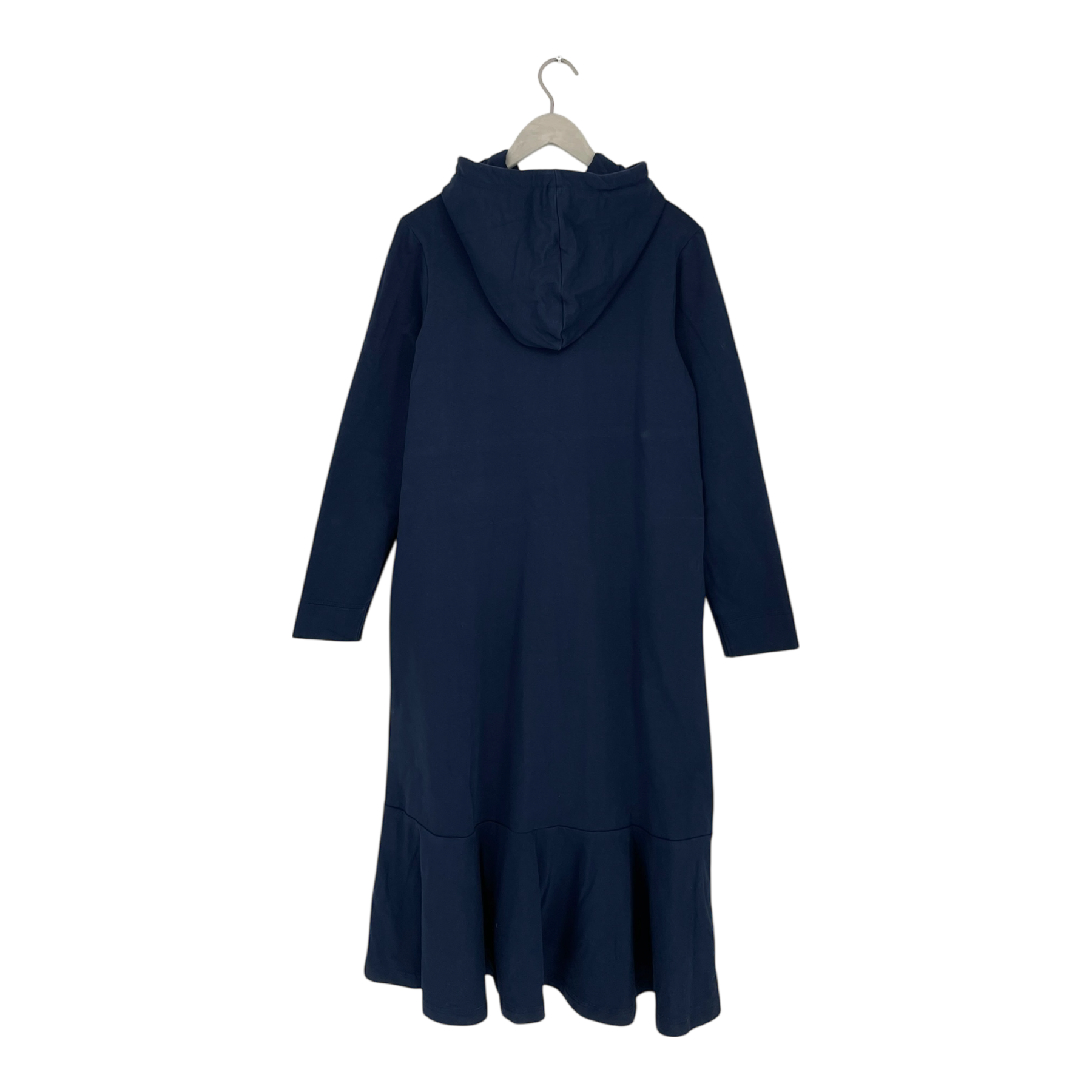 Ommellinen hulmu hoodie is a sweat dress with a hood and a flowy hem.
