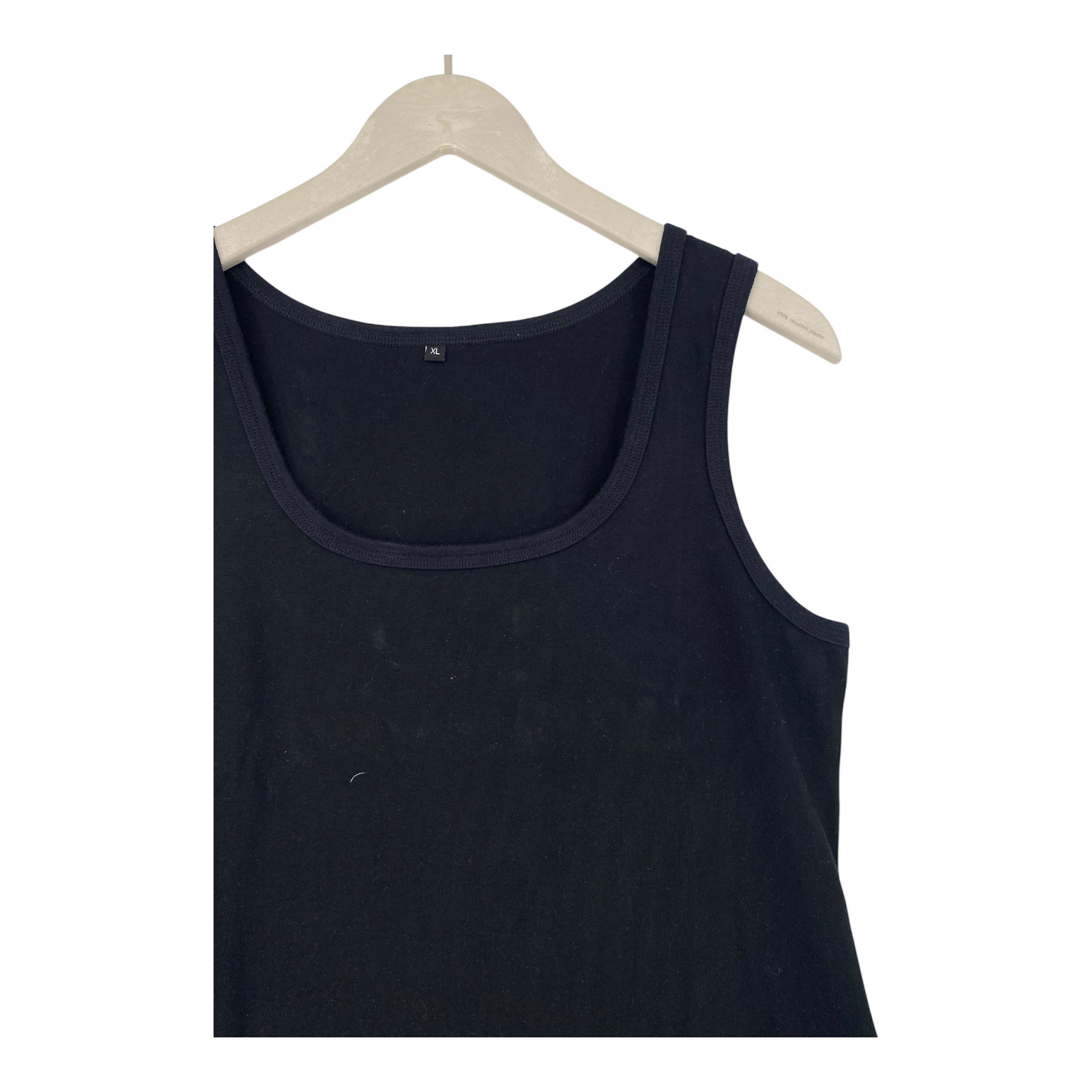 Ommellinen Mekkonen sleeveless tricot dress in black.