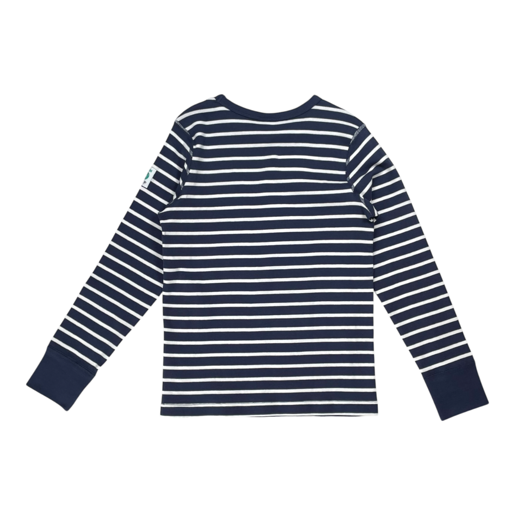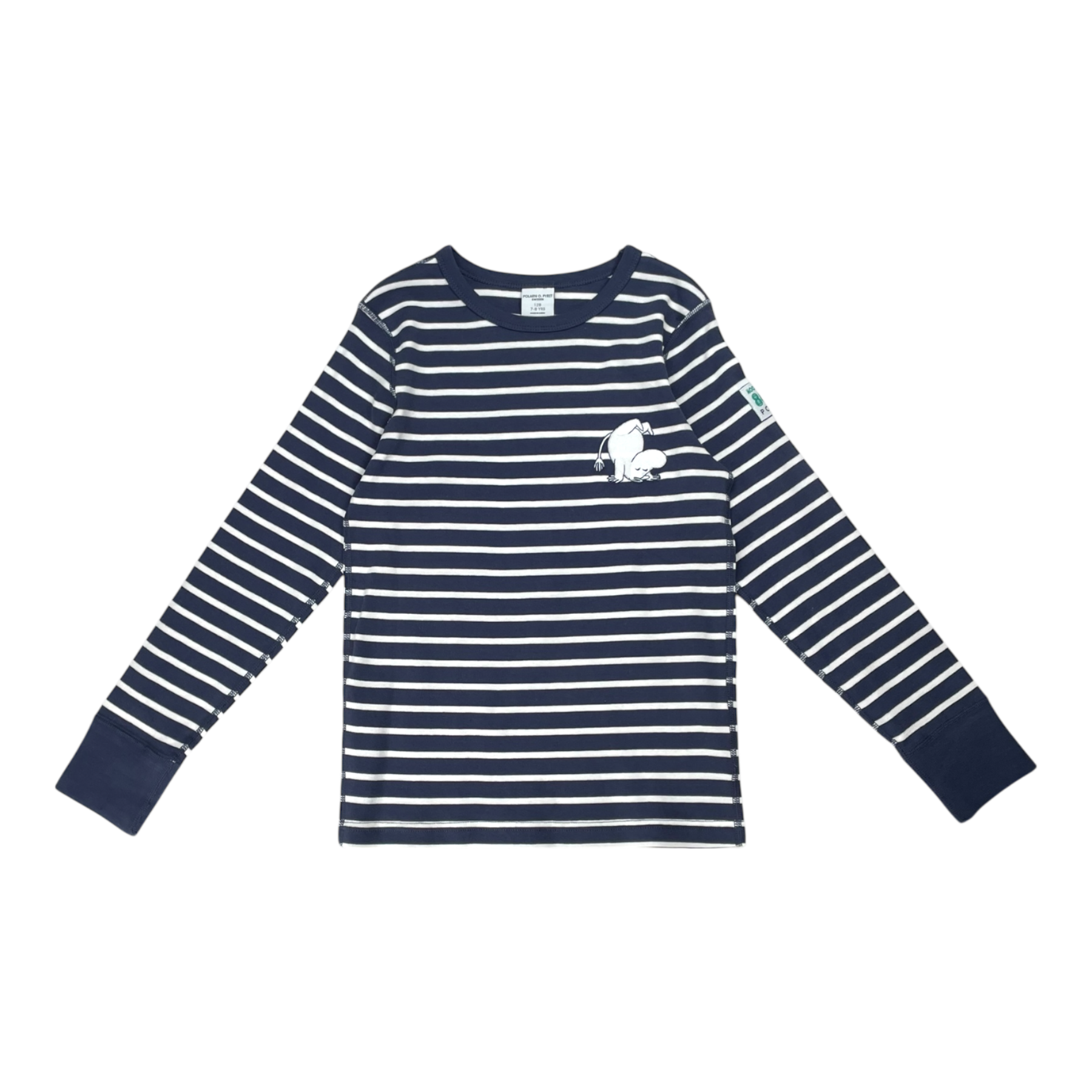 Polarn O. Pyret long sleeve shirt with stripes and a Moomin figure.