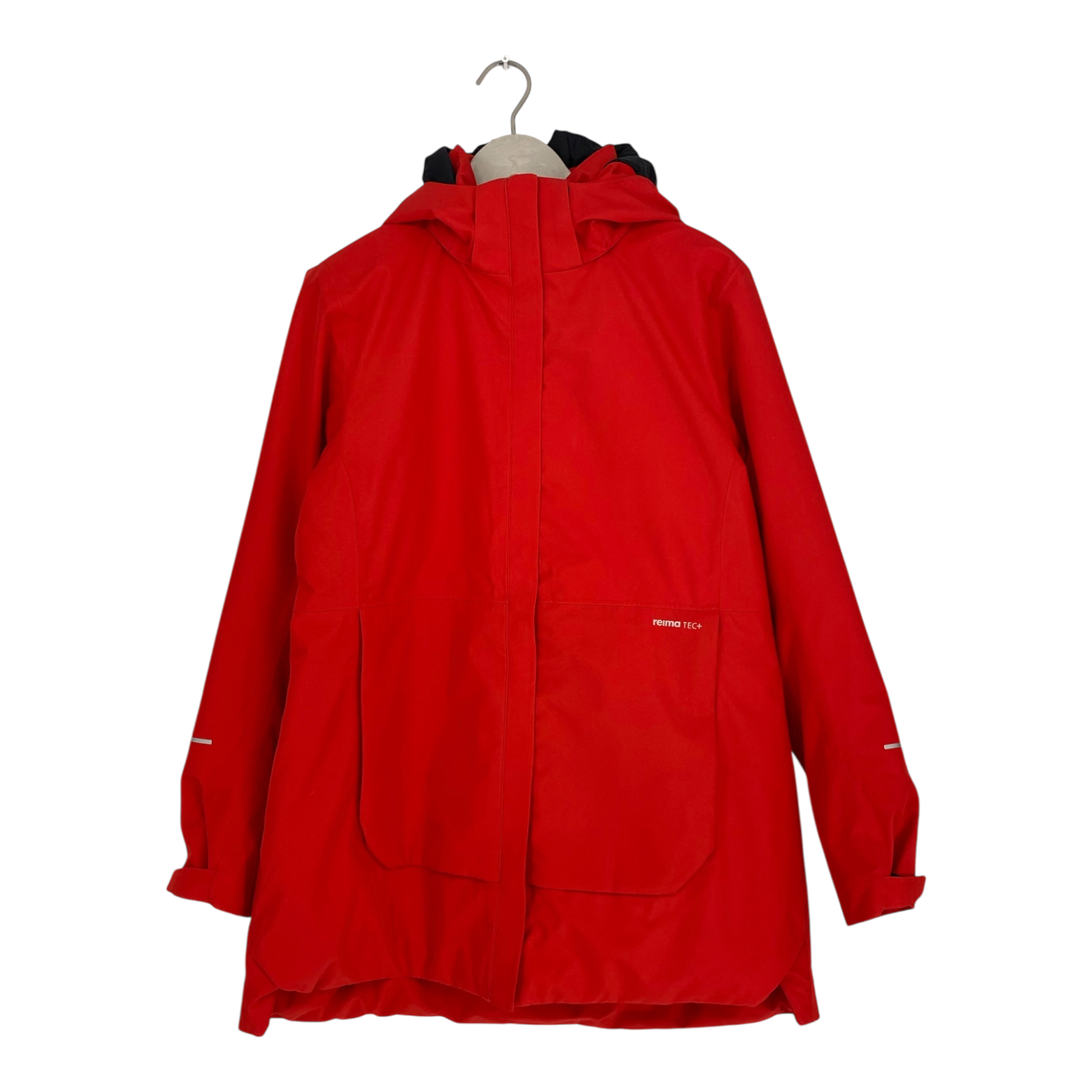 Reima Innostus winter jacket with detachable and adjustable hood. Reflective logos and details, two zip pockets, and an adjustable snow lock at the waist. The jacket is originally waterproof up to 10,000mm water column, all the seams are taped and dirt repellent.