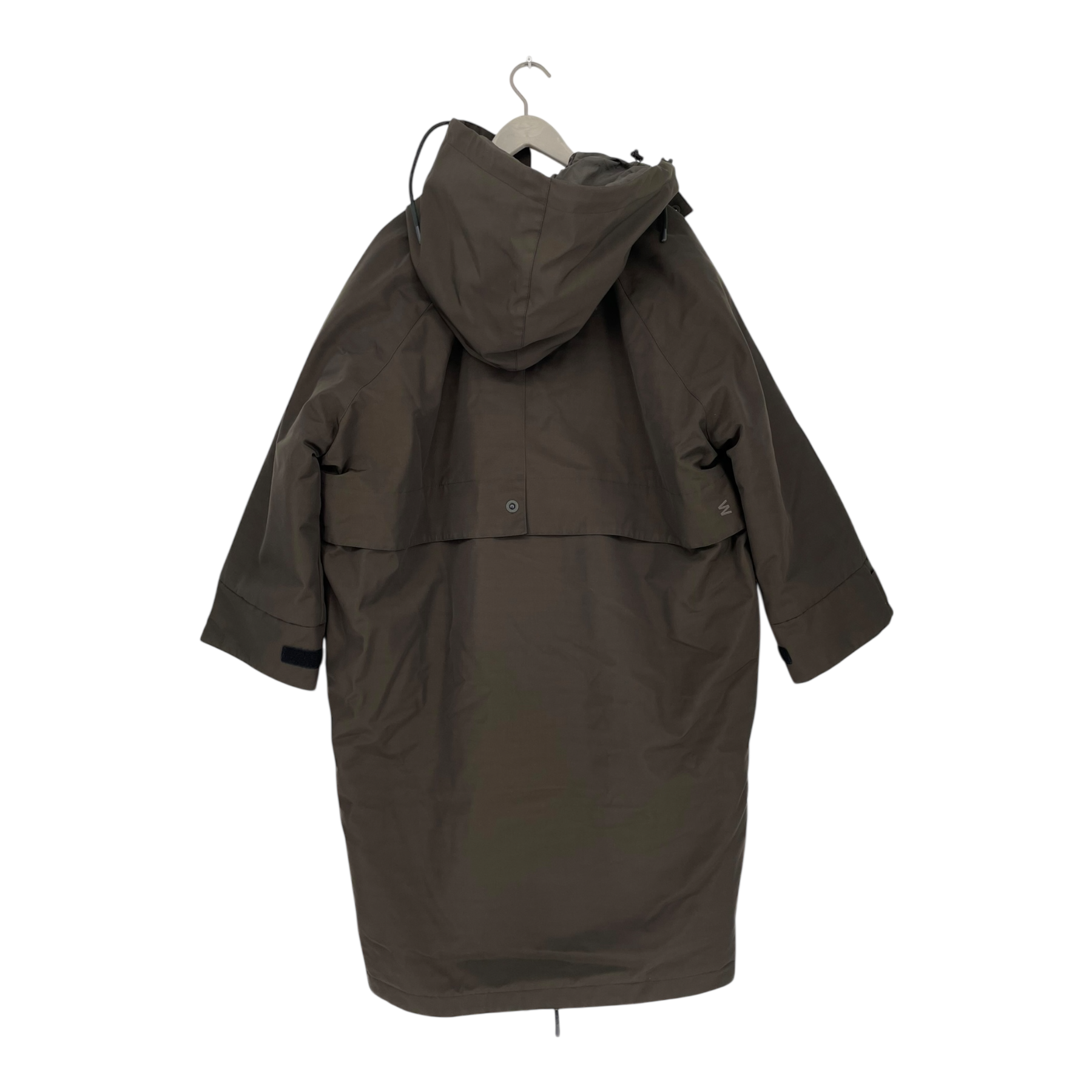 When mod and samurai collide. This oversized parka has adjustable kimono-style sleeves, a double-layered hood made from crushed nylon and extra deep pockets. It’s waterproof, recycled outdoor fabric and no-down inner have you covered.