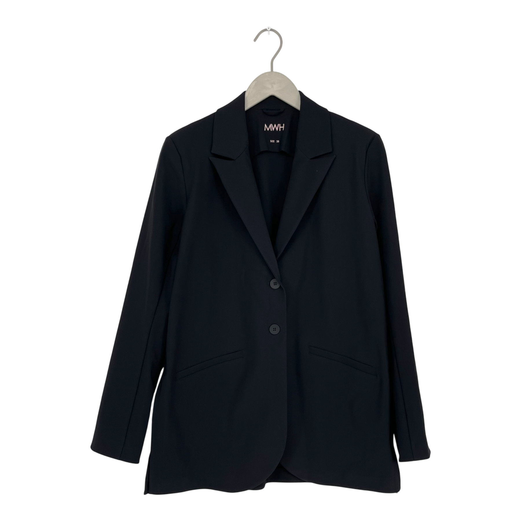 Move & Work in Harmony Rebel Jacket has a relaxed and oversized fit. Inspired by the classic blazer. Slits in the side sleeves and at the sides complete the classic suit details.