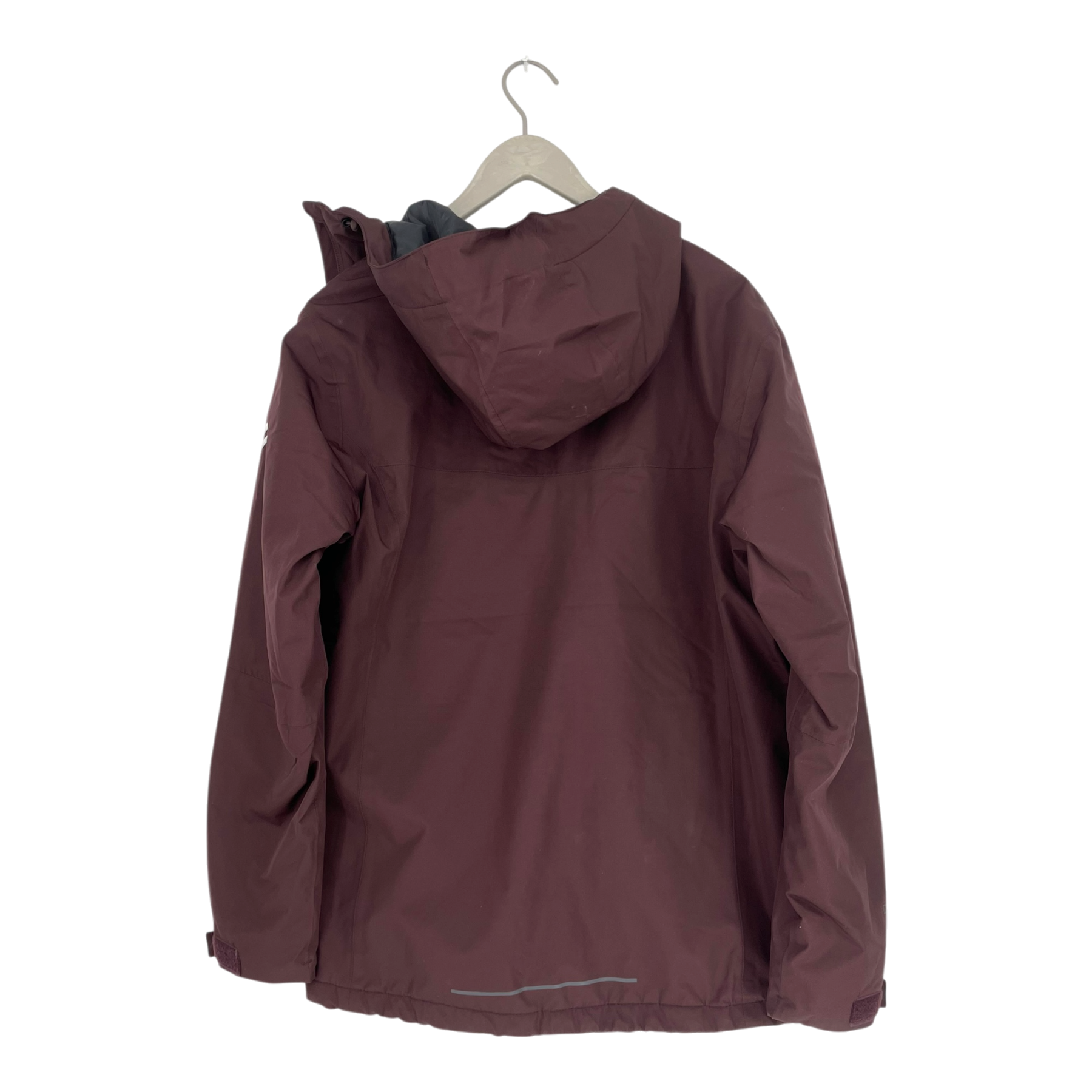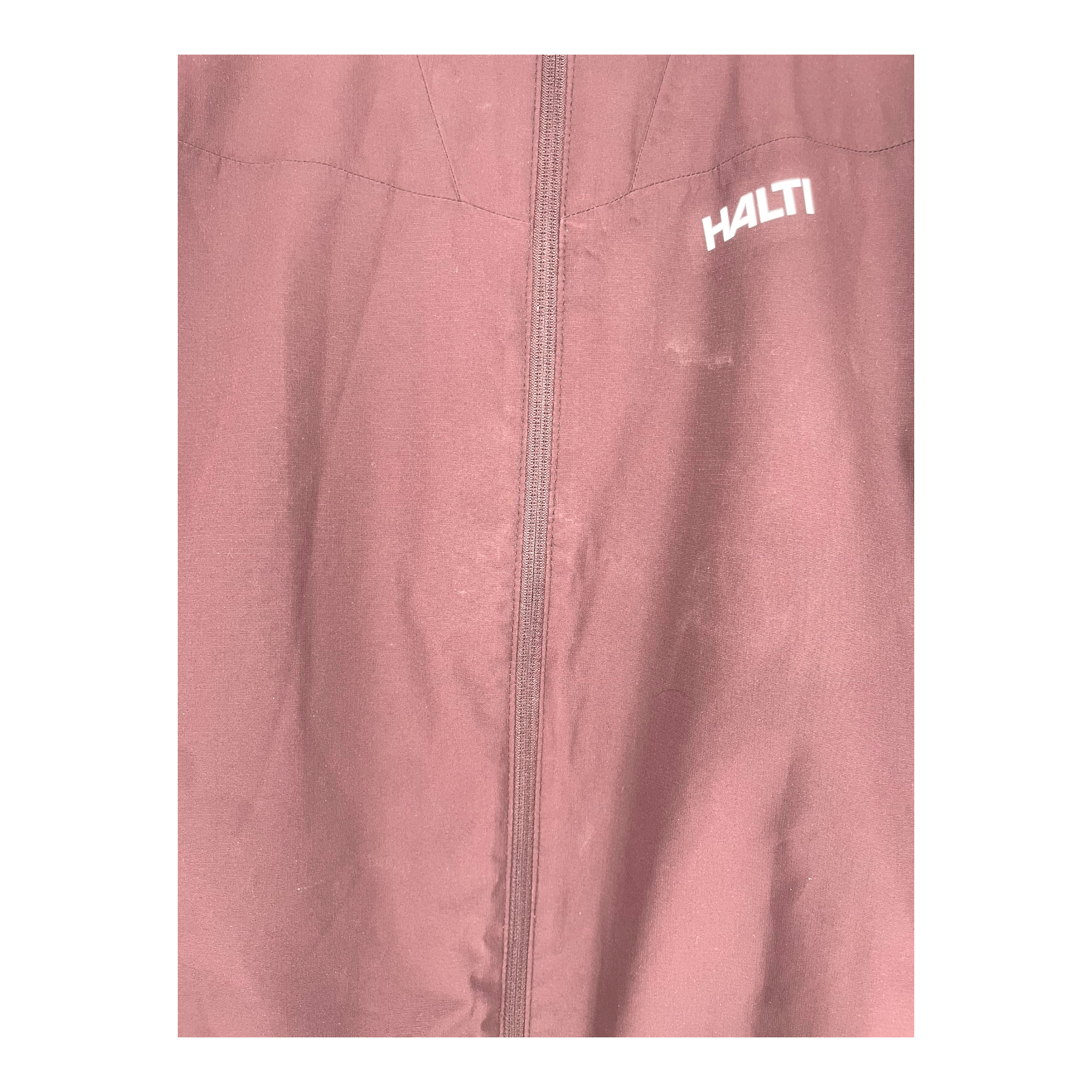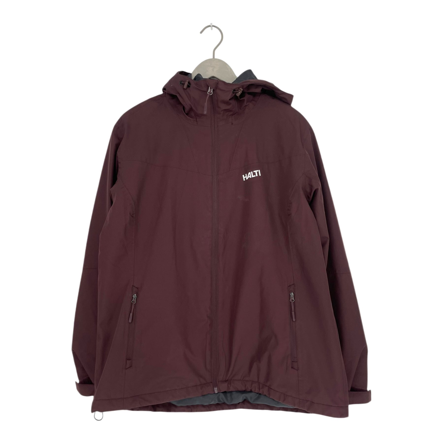Halti women's Forter midseason windbreaker DrymaxX shell jacket. The jacket has a zipper closure in the front and two side pockets. The hood and the hemline can be adjusted with drawstrings. This shell jacket offers timeless design, reasonable functionalities and weather protection for effortless outdoor life. It is made with polyester fabrics, strong ripstop shell and breathable mesh lining.