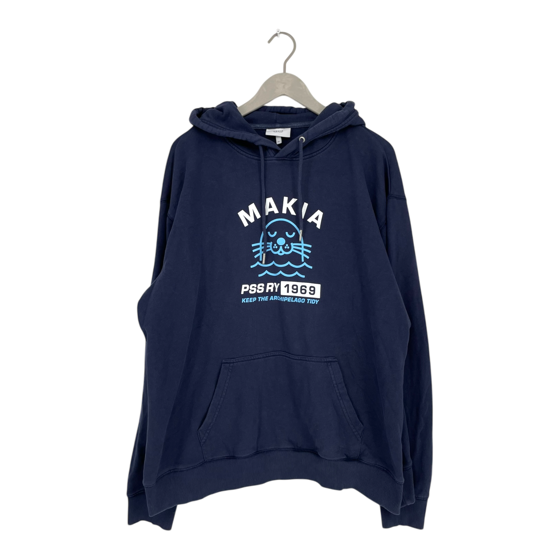 Makia basic pull over hoodie with string tightening and large front pouch pocket. Keep the Archipelago tidy logo on front.