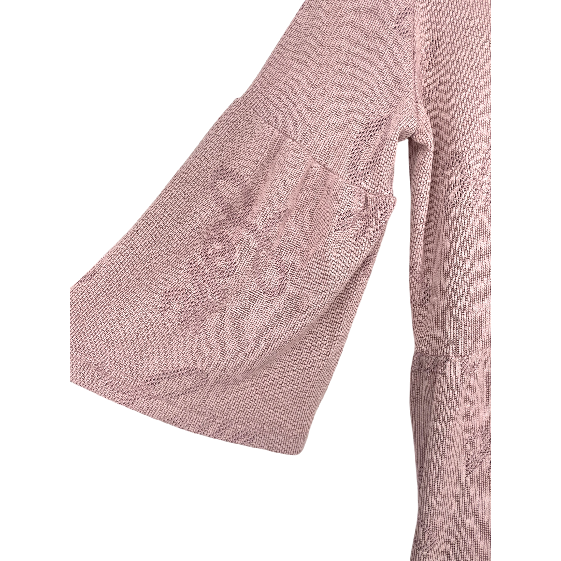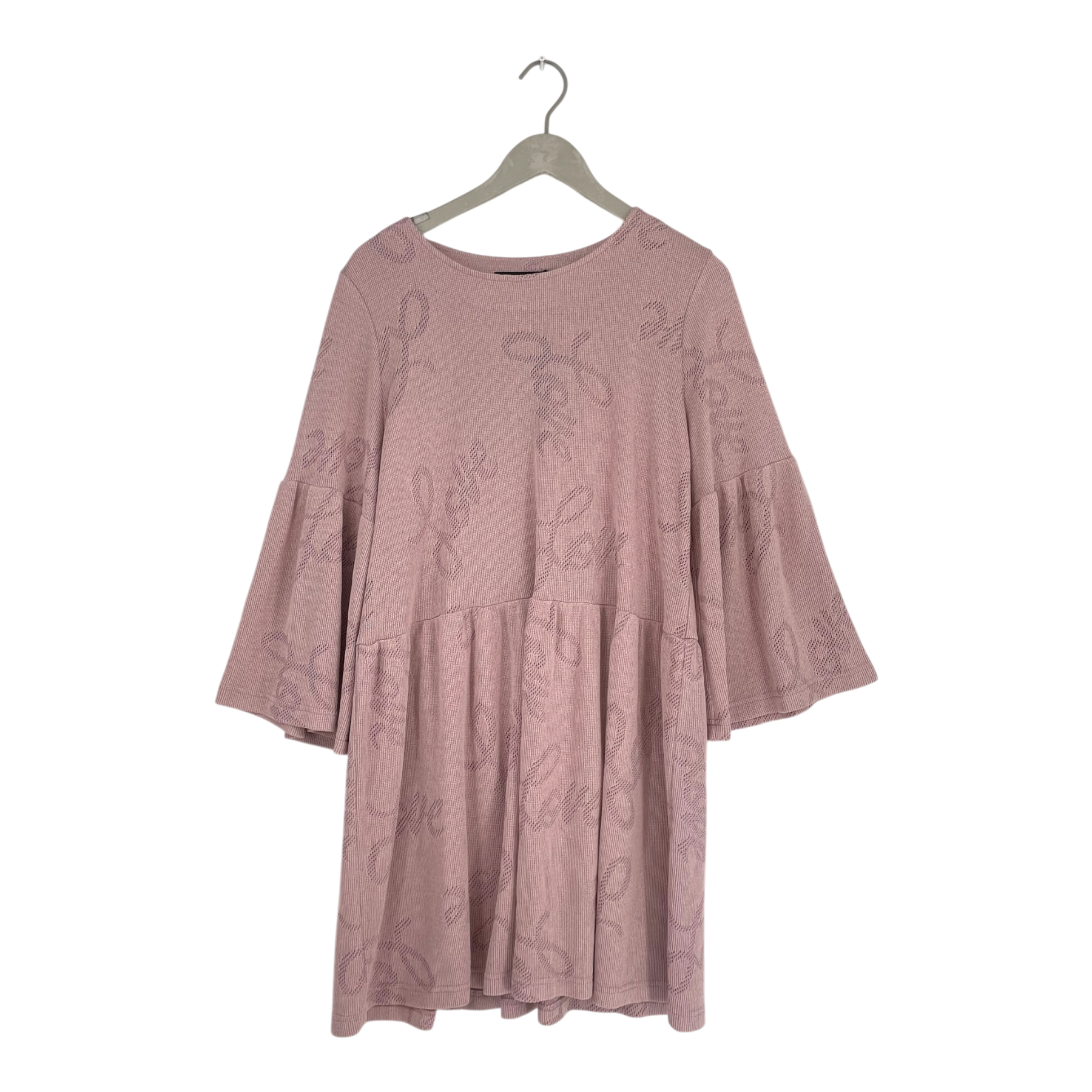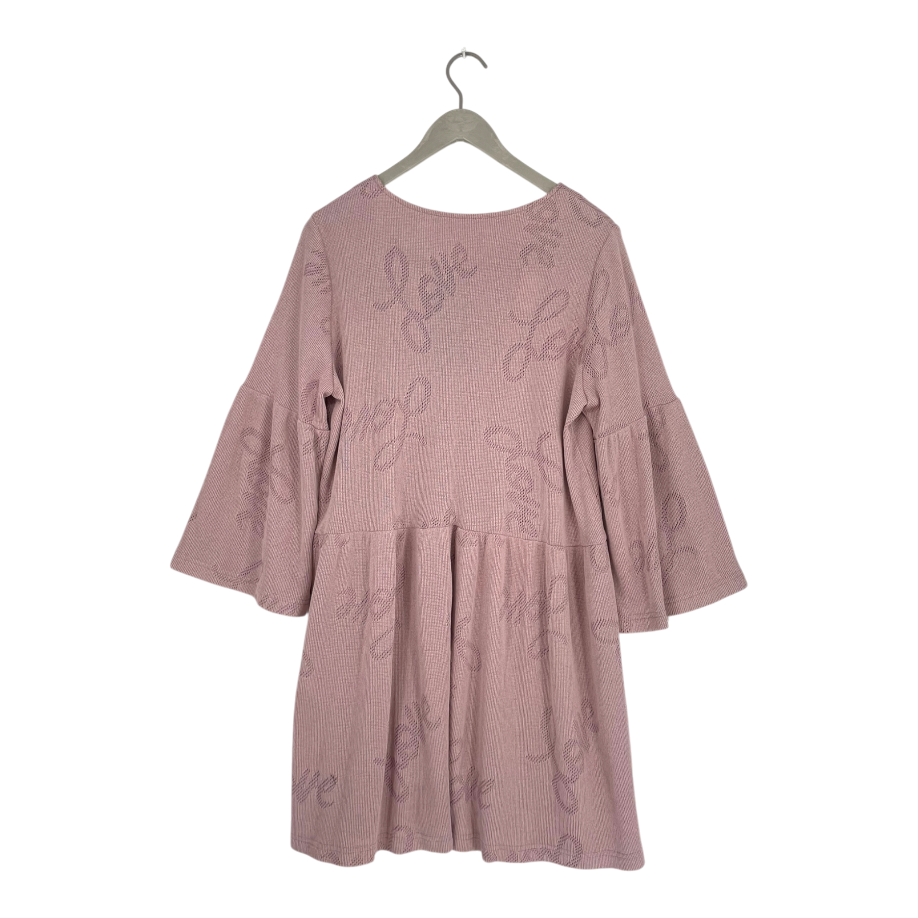 Vimma kukka tunic dress in a love print with frilled cuffs and hem. The dress has a round neck and side pockets.