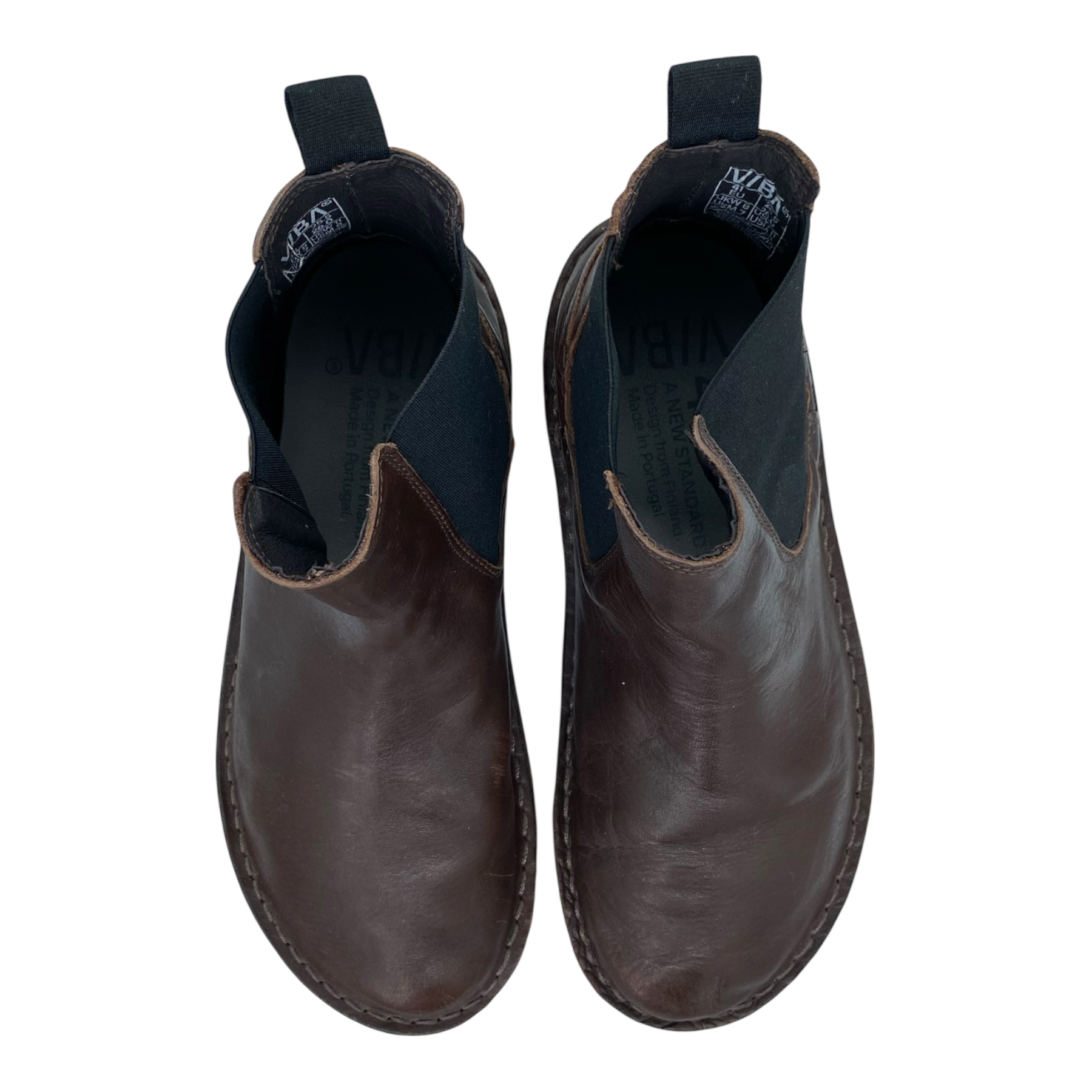 VIBAe Helsinki leather boots. The HELSINKI boot from VIBAe is made from premium vegetable-tanned leather. These year-around unisex boots are made from soft leather and come with a leather pull and large elastic gore on either side.