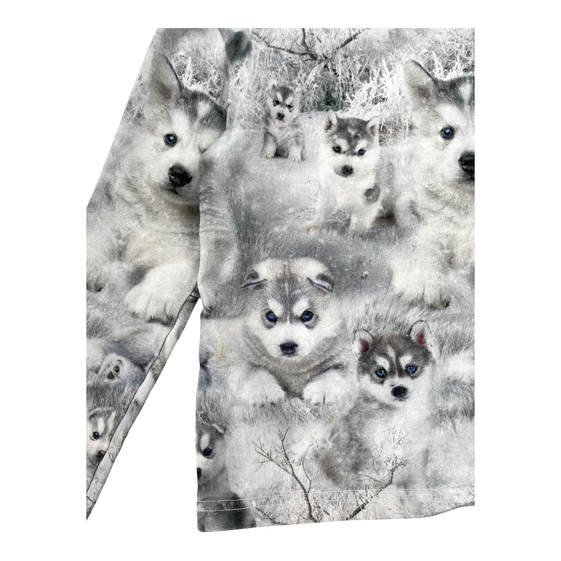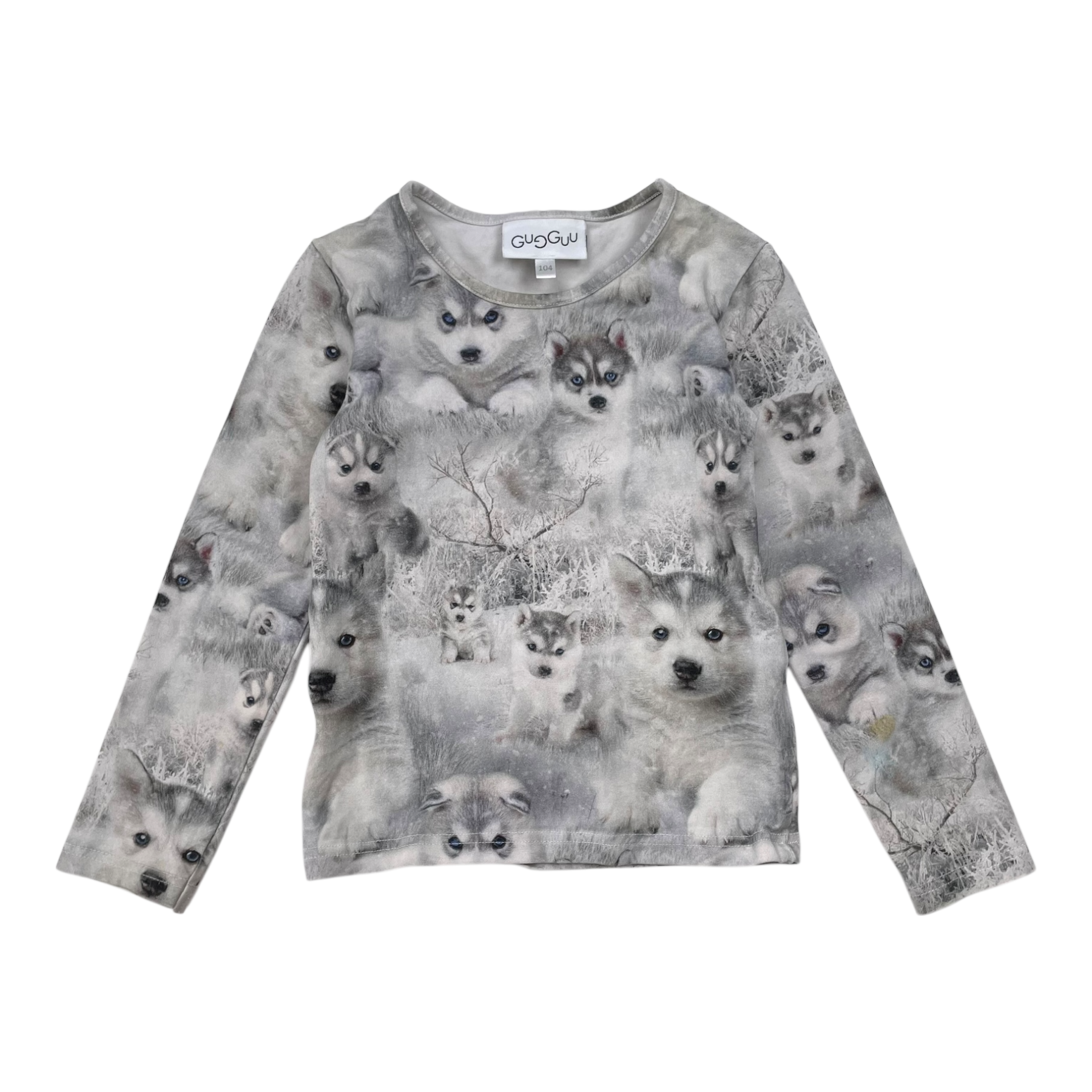 Gugguu long sleeved shirt with a husky print. Some stains as shown.