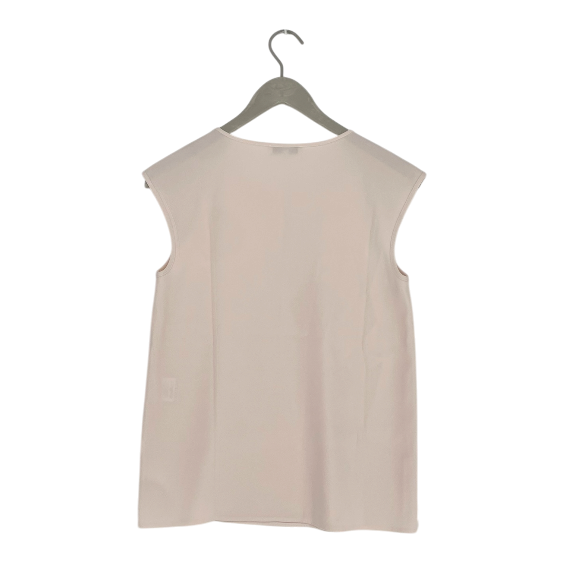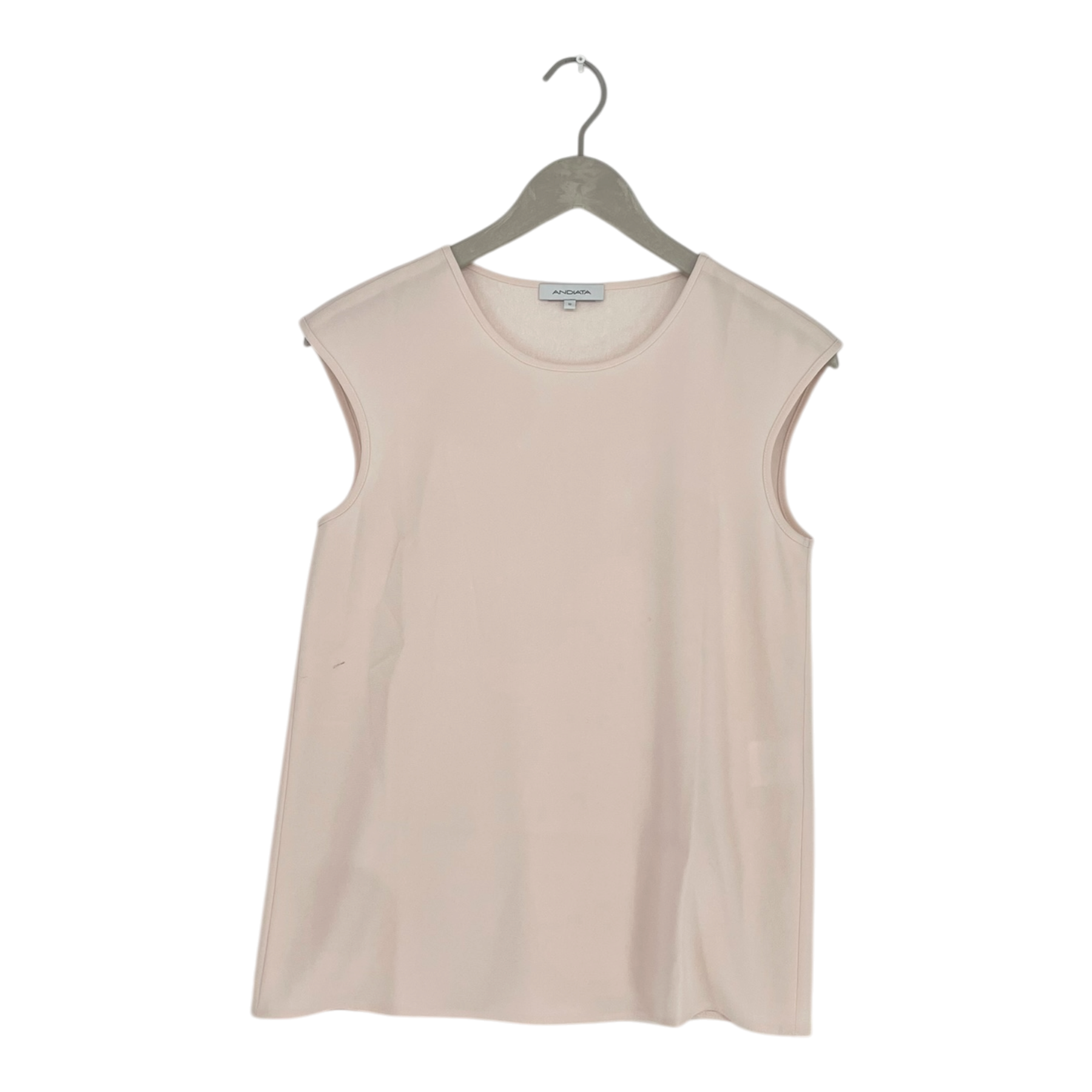 Andiata sleeveless top in a light pink hue. This classic piece features a simple, clean design with a round neckline and a straight fit. It is designed without sleeves, making it a versatile layering item.