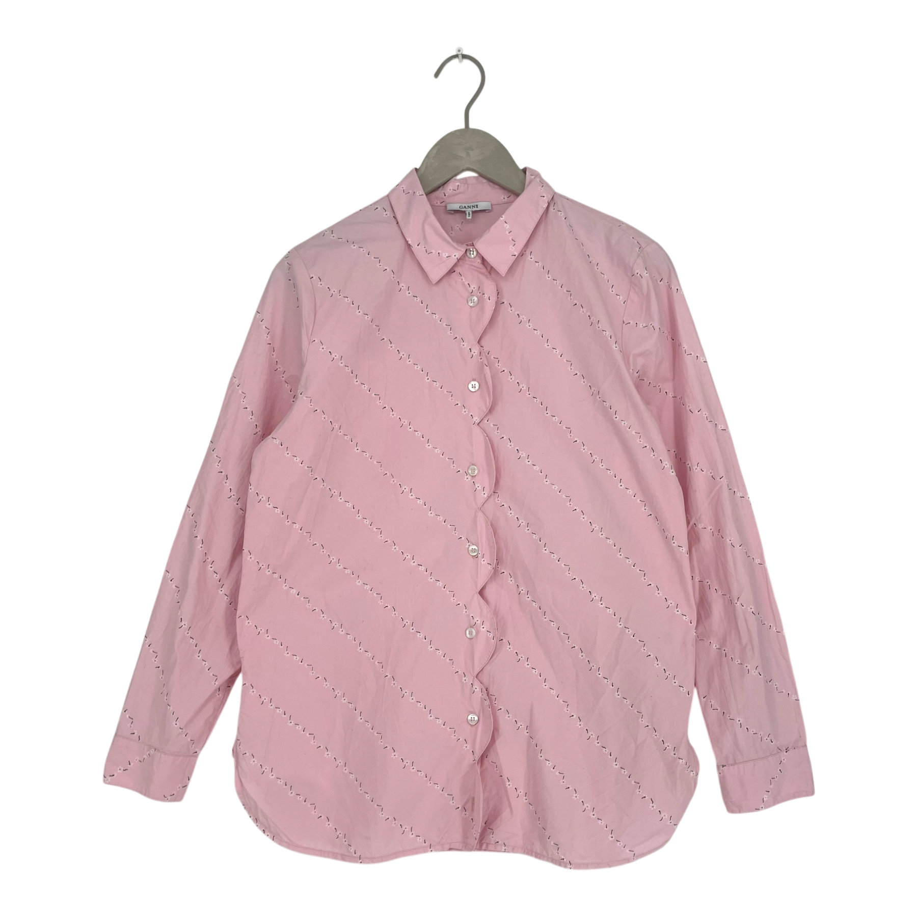 Ganni button down shirt with beautiful frill detailing on the seams. Flower print.