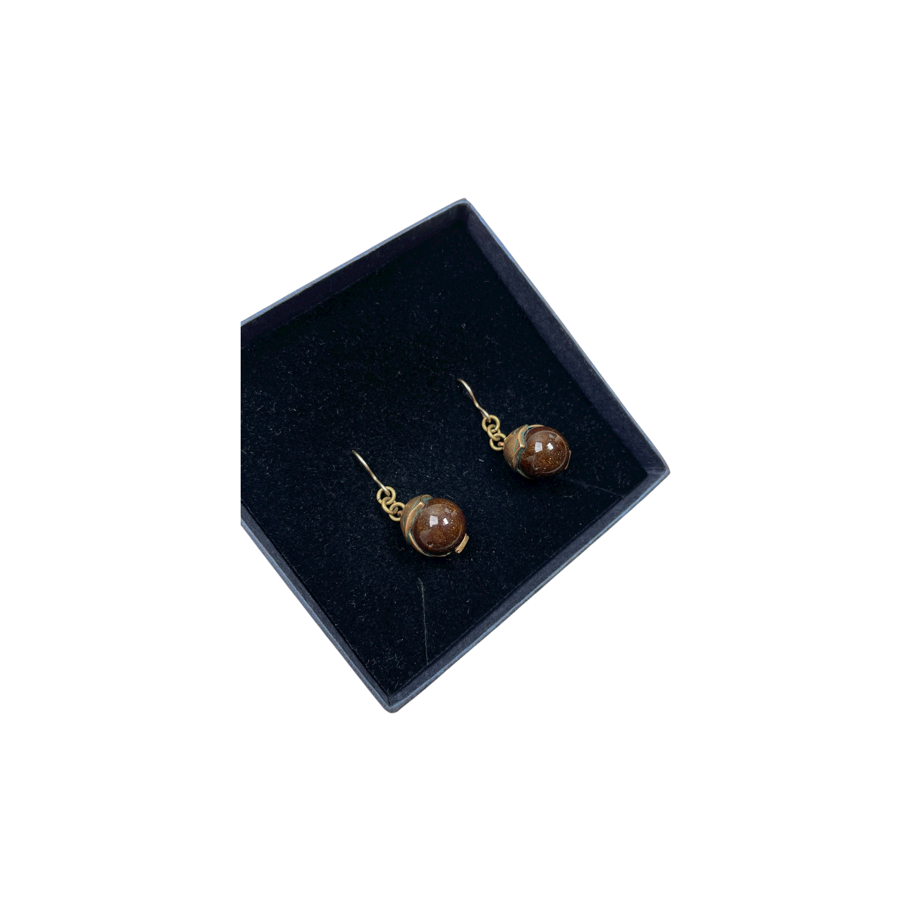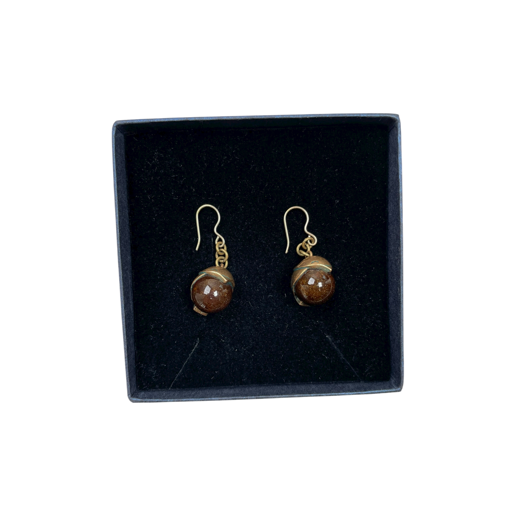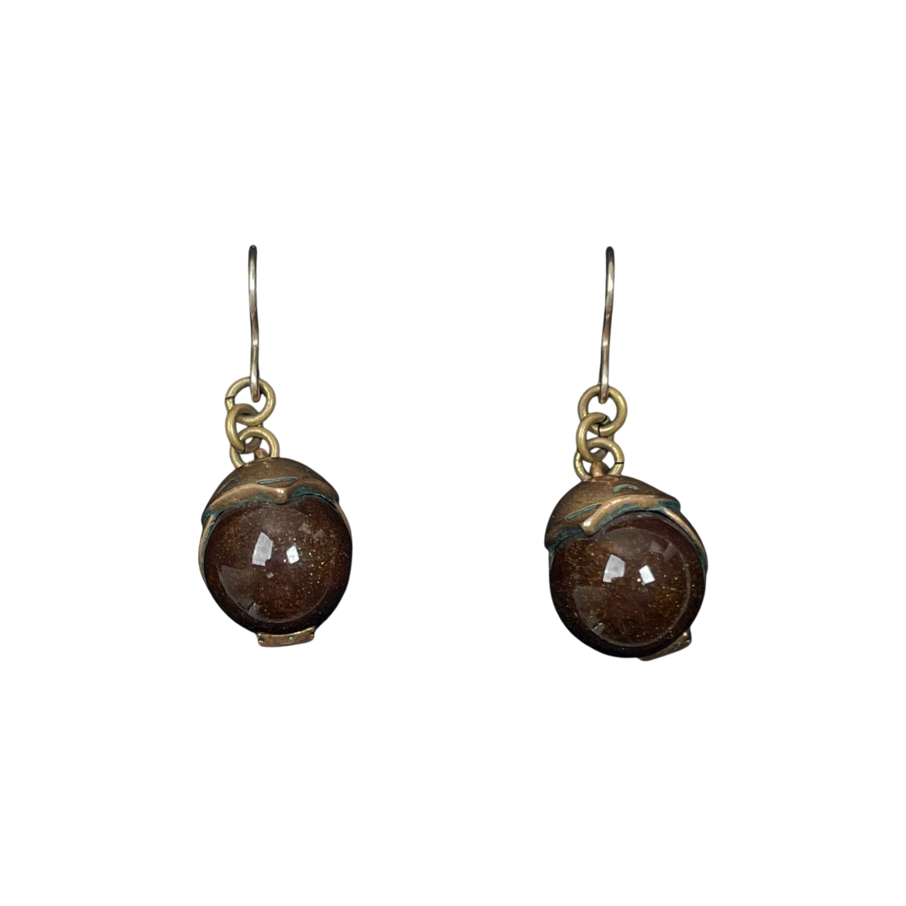 Kalevala Koru bronze Tintti earrings with painted brown ceramic part. There is little patina on metal parts.