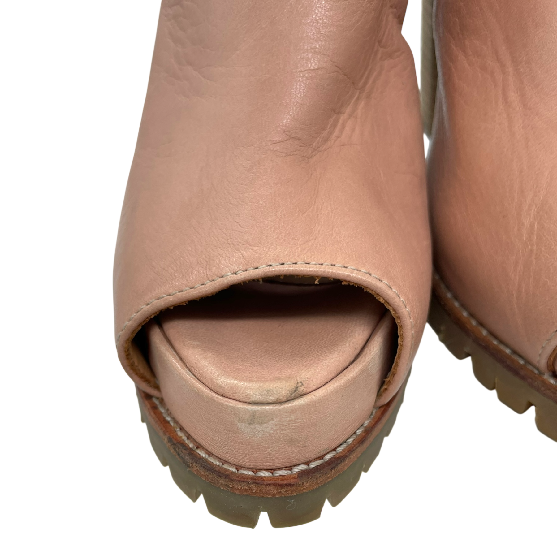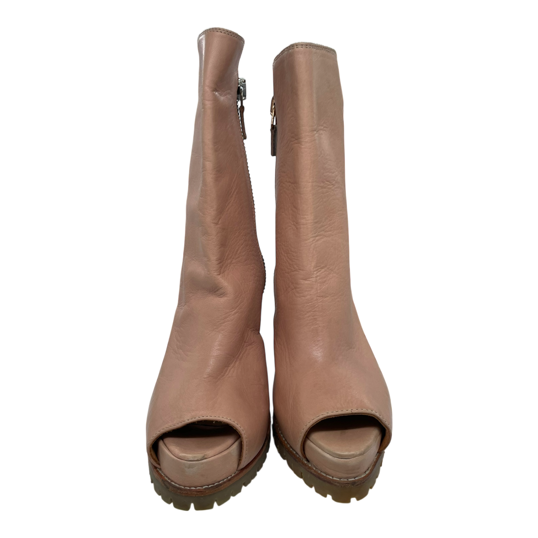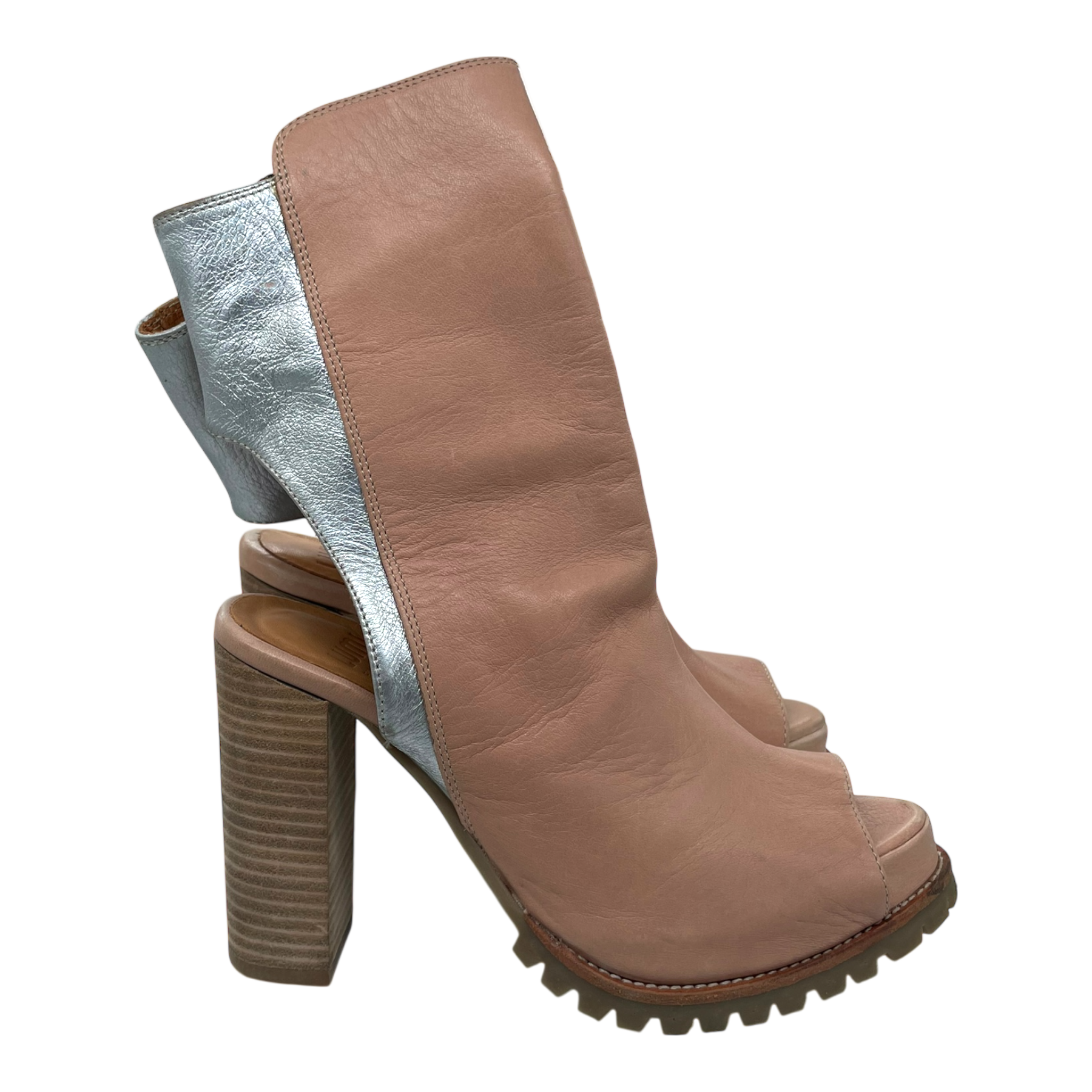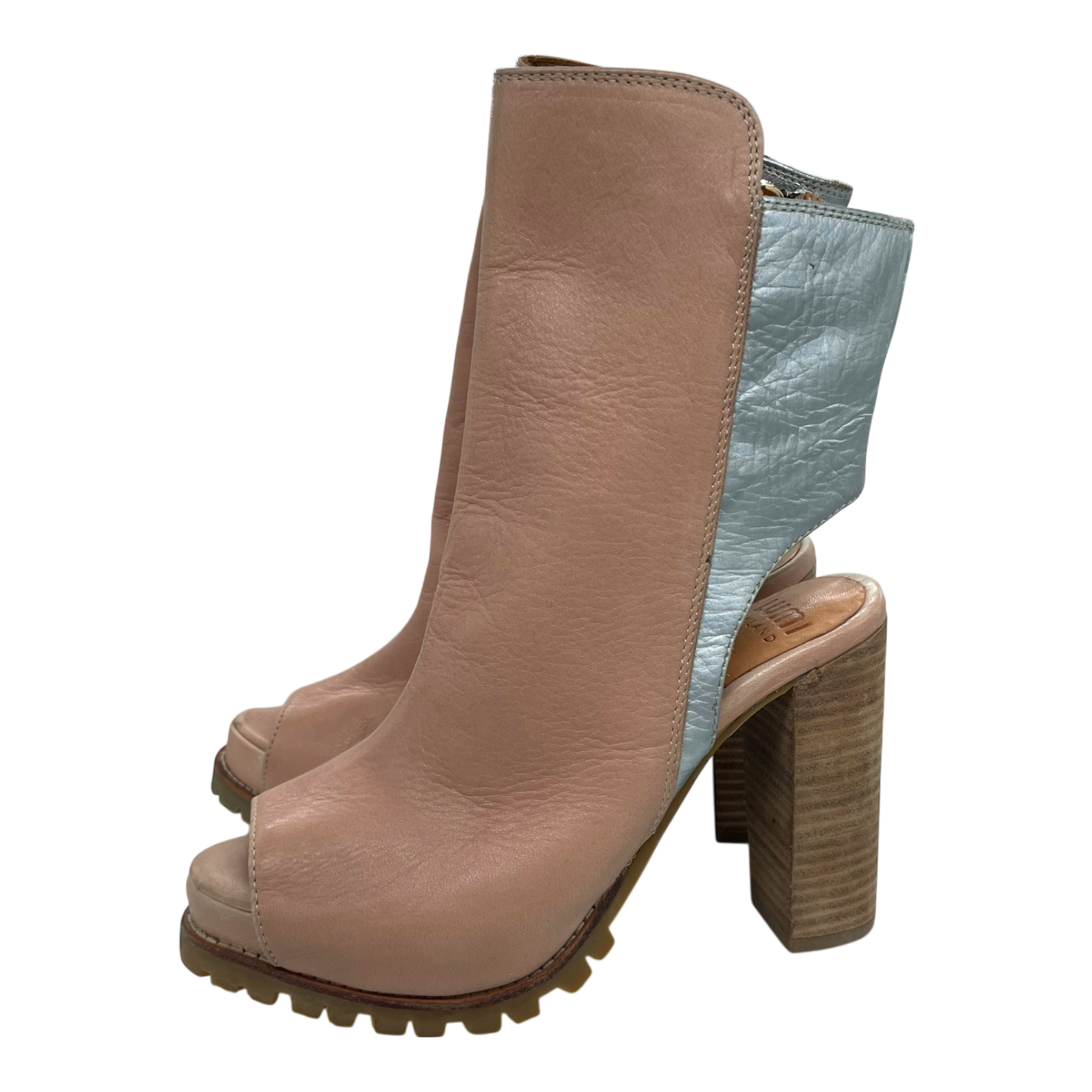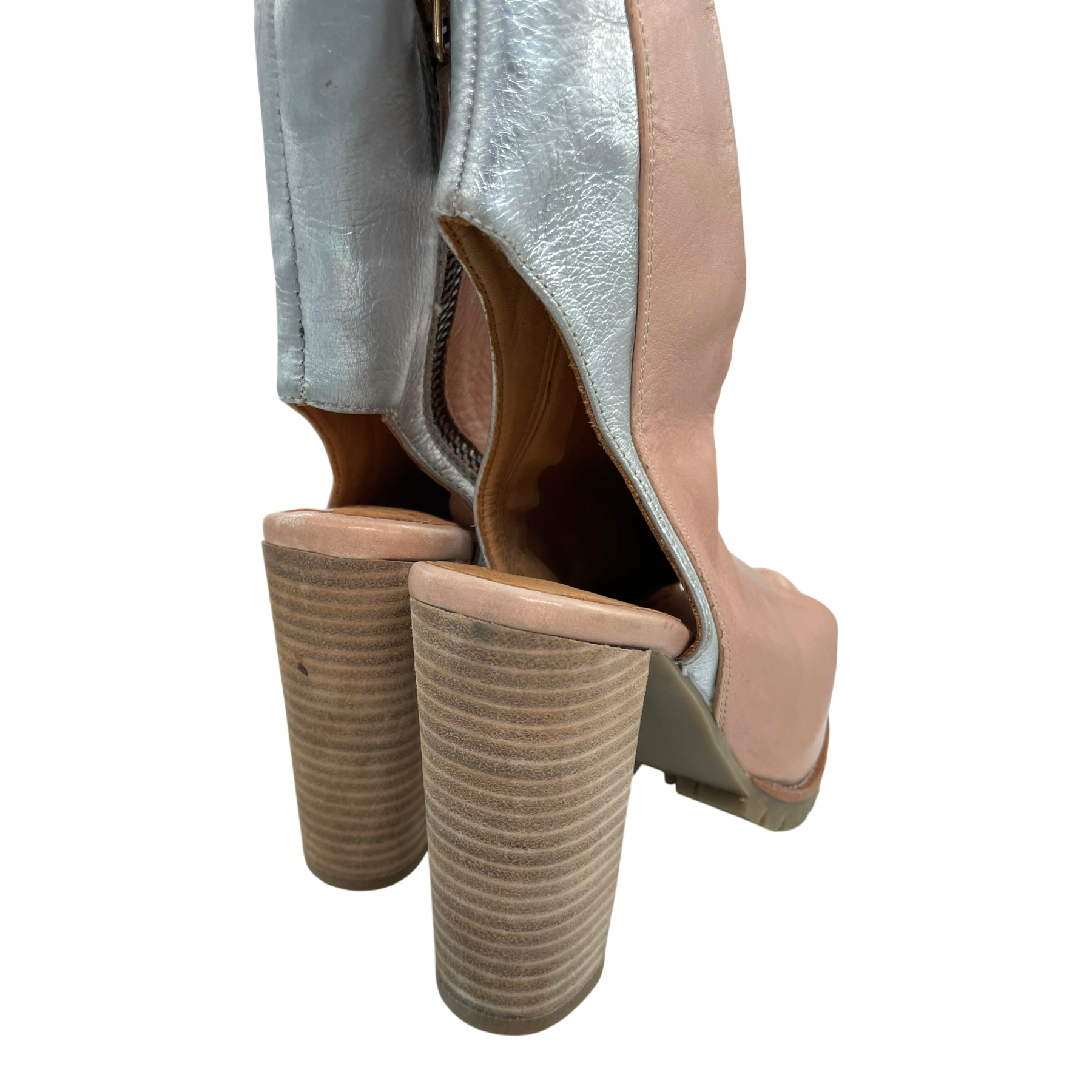 LUMI leather heels with side zipper, open back and open toe.
