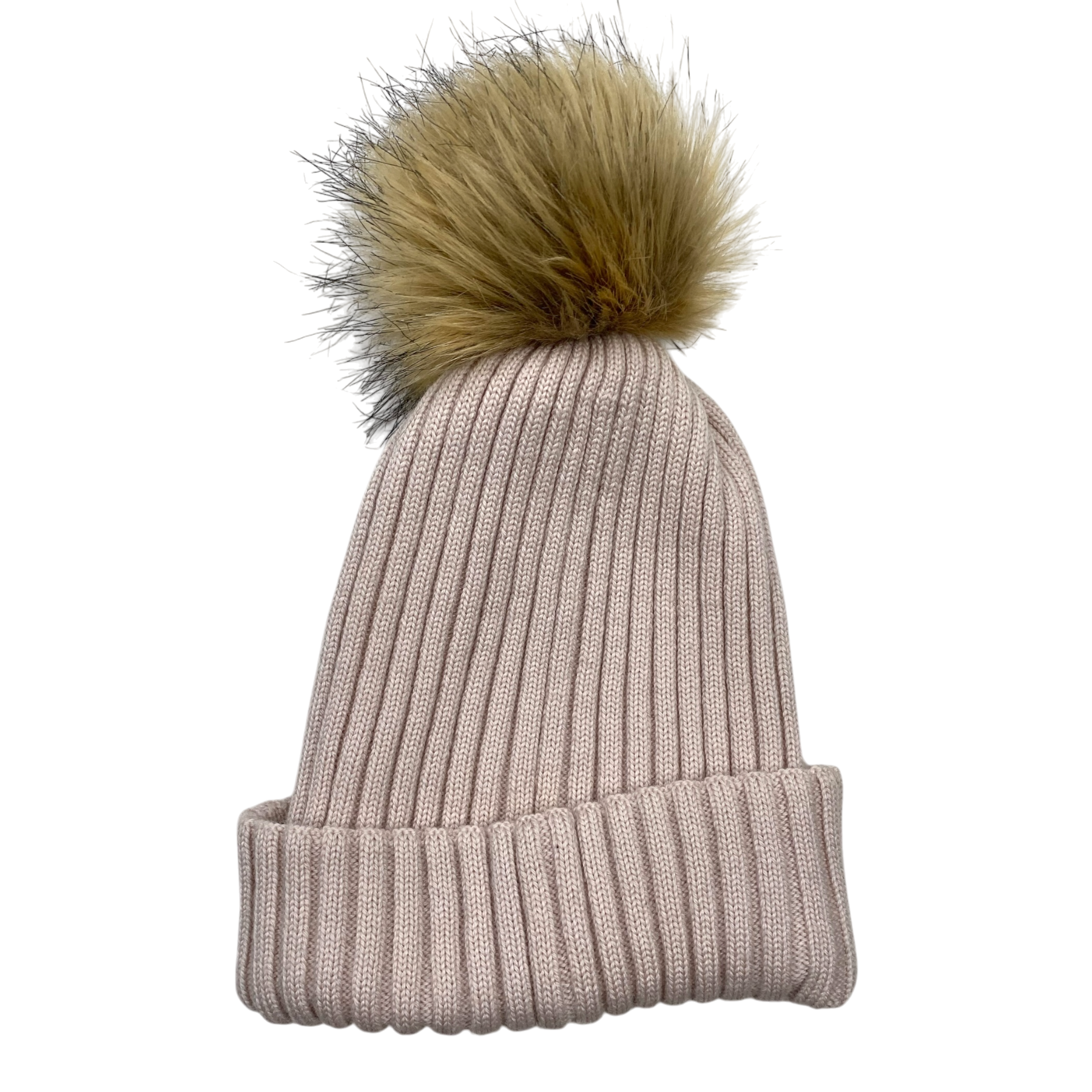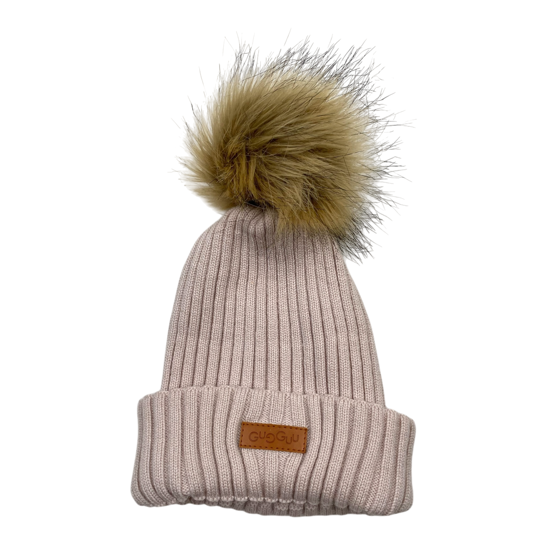 Gugguu merino wool beanie a fake fur pom.