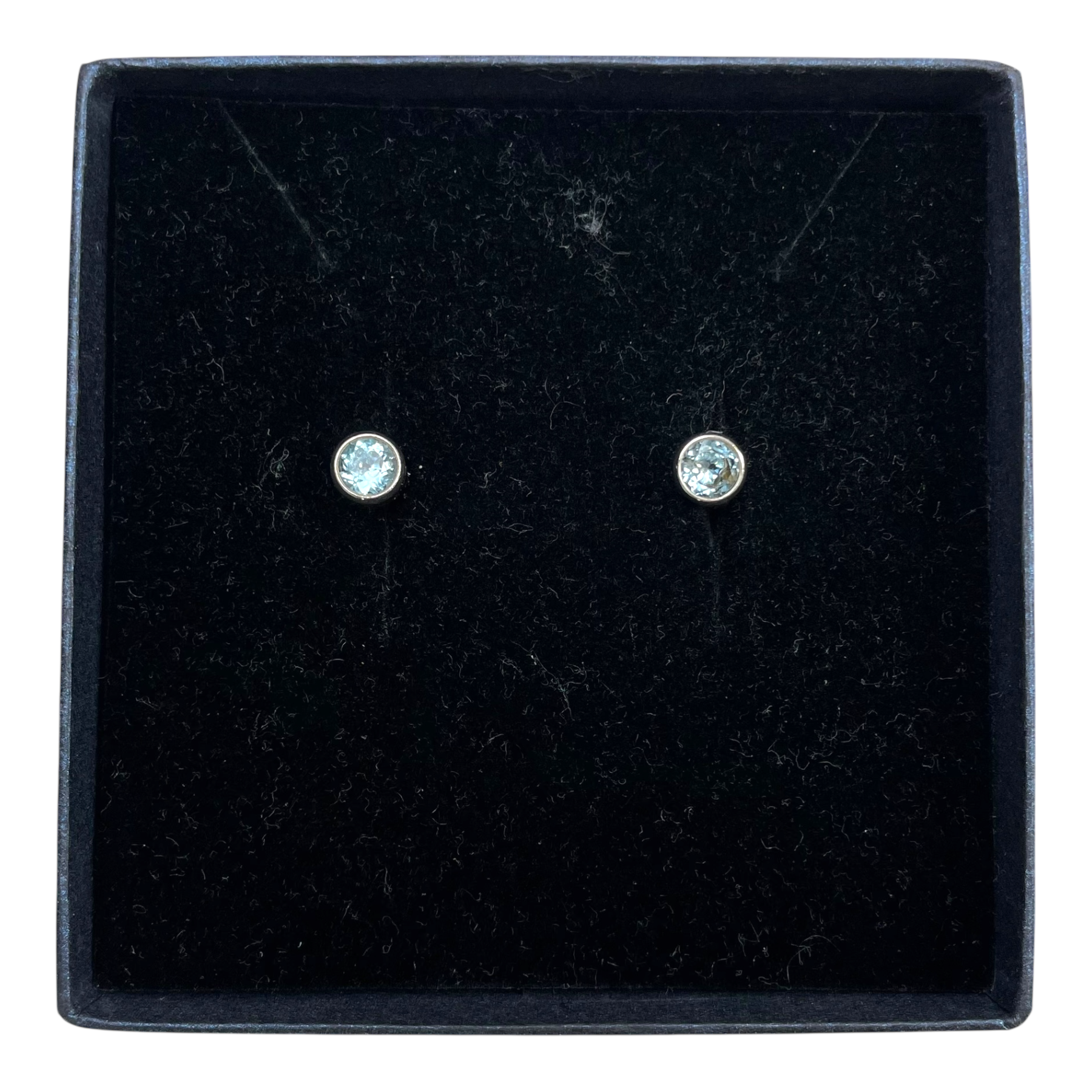 Kalevala Koru Lähde stud earring’s. The earrings are minimalist, clean-lined silver setting, a skillfully faceted light blue topaz sparkles beautifully. Suitable for both everyday wear and special occasions, this earring’s understated, timeless design allows it to be paired effortlessly with a wide variety of jewelry and outfits.